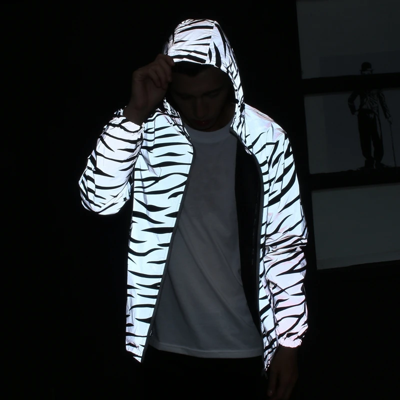 Танцевальная певица, одежда для выступлений, Полосатое светоотражающее пальто с принтом зебры, модная Толстовка для пар, мужская и женская куртка, ветровка, кардиган