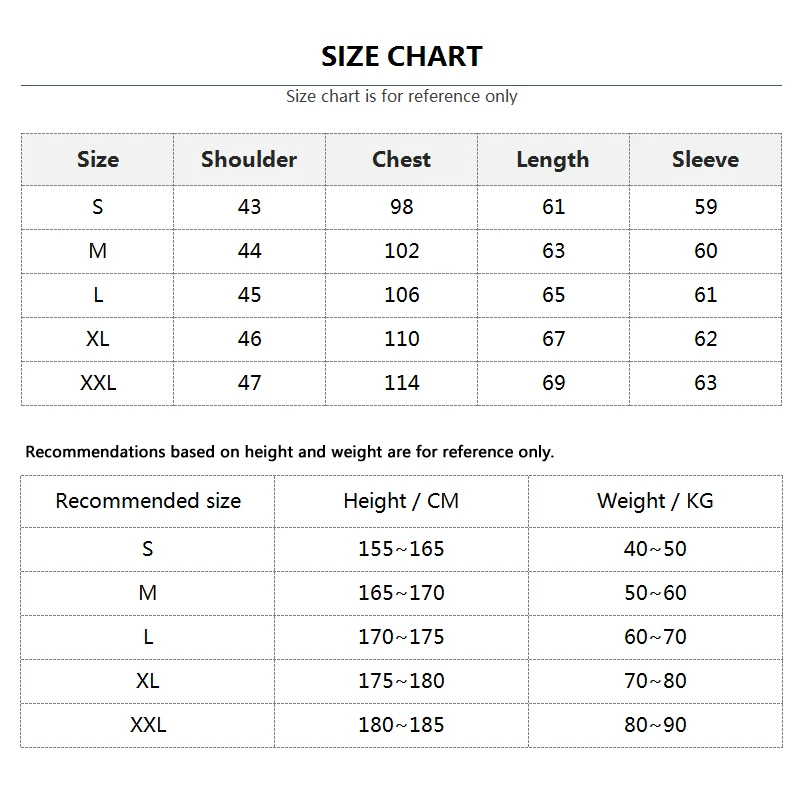 Полезные советы: размер заказа-это Азиатский Размер, он меньше, чем размер США, Великобритании, Австралии, ЕС. Если вы не уверены, пожалуйста, сообщите нам ваш рост и вес, мы предложим вам правильный размер. Единица измерения: см (1 см = 0,394 дюйма)