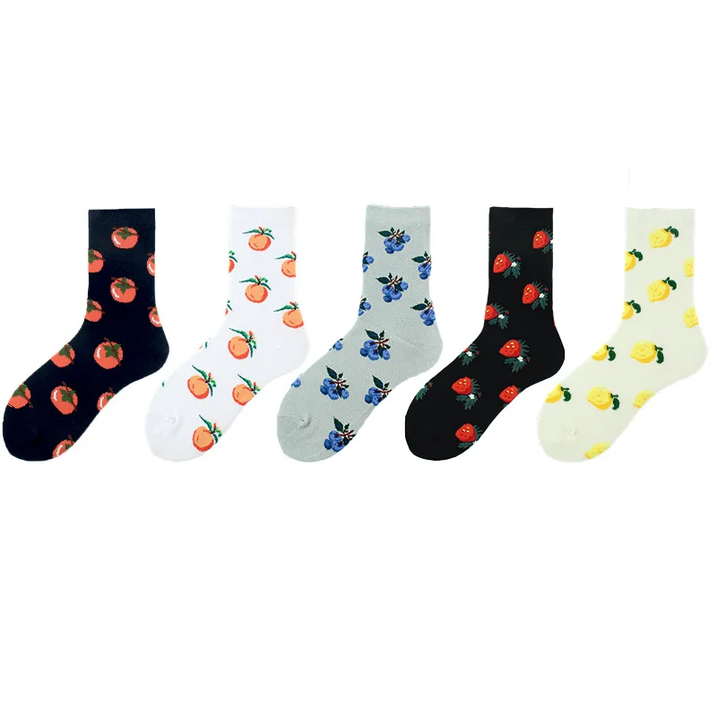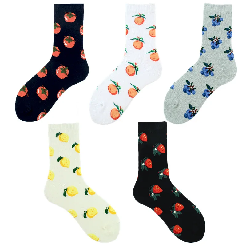 Хлопковые носки для взрослых с фруктами, сочный лимон, помидор, черника, медовый персик, клубника, лимоны, помидоры, черника, персик, клубника