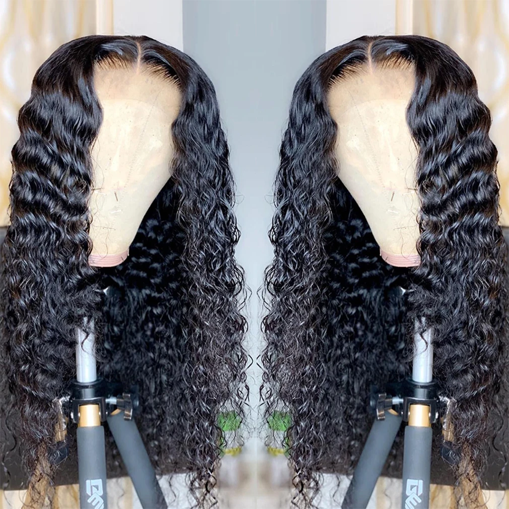 Парик из натуральных волос с крупными волнами для чернокожих женщин, 30 дюймов, длинный бразильский кудрявый парик с сетчатой вставкой 4x4 без клея