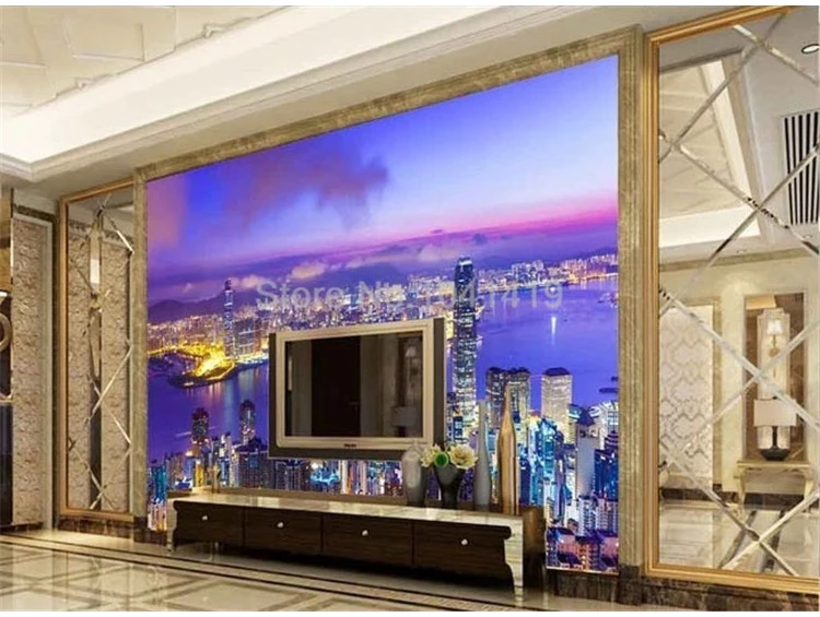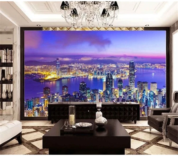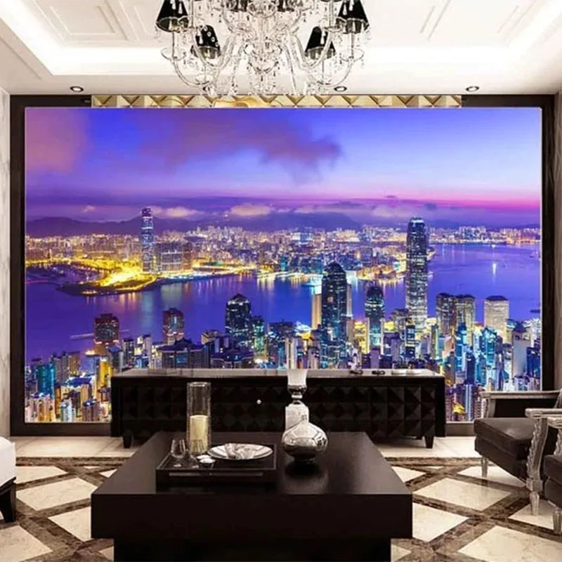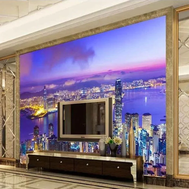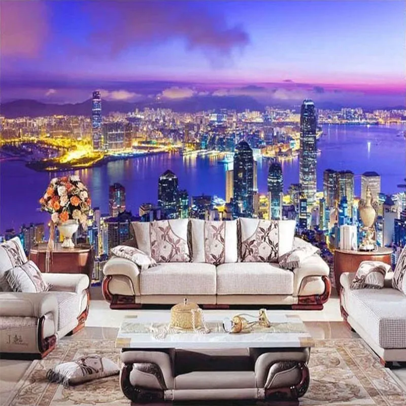 Пользовательские 3D обои, современный Городской Ночной пейзаж, фото, настенные фрески для гостиной, ресторана, декор для стен