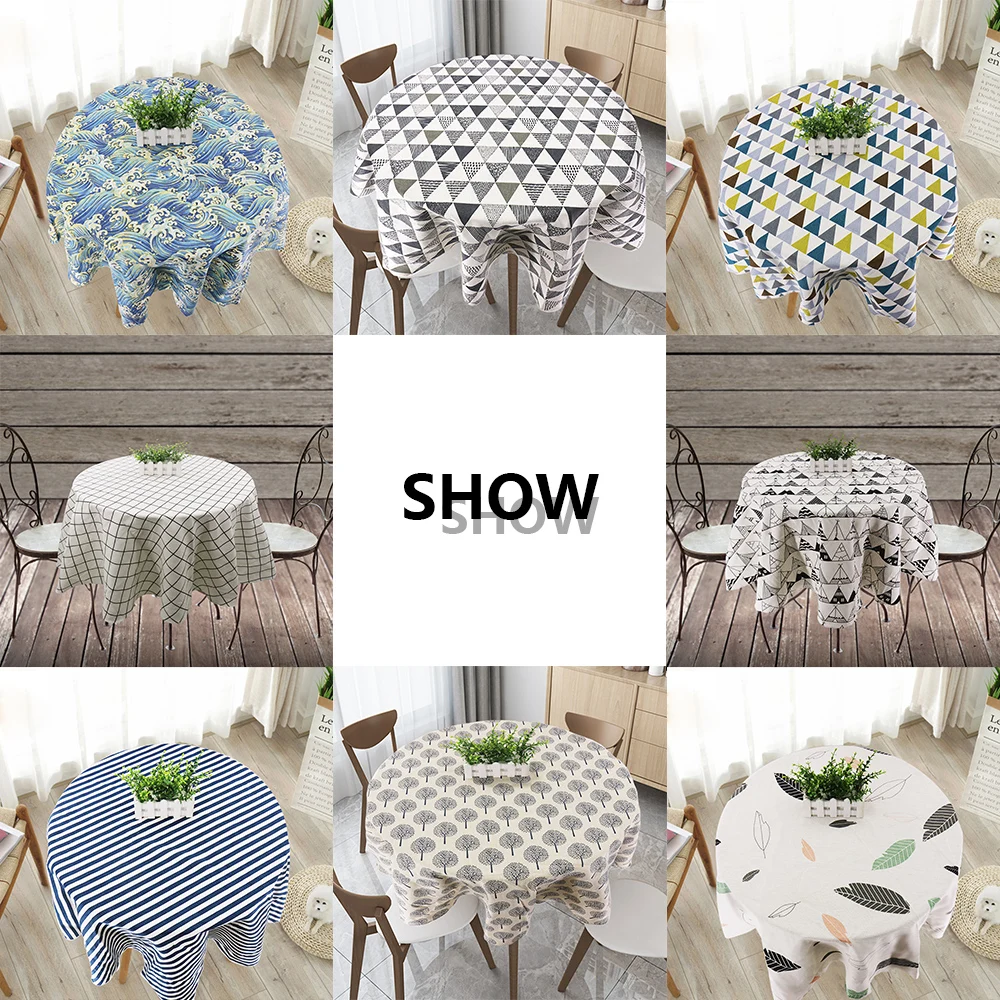 1 шт. Лен Печать скатерть круглая скатерть стол накрыть Nordic полиэстер хлопок домашний кухонный украшения 150 см Пылезащитный чехол