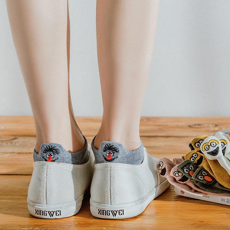 Носки короткие женские 5 пар, милые Мультяшные, стиль Харадзюку, корейские милые, комплект