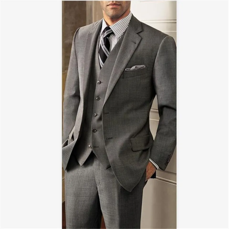 Новейший дизайн, мужской костюм Smolking Terno, приталенные вечерние костюмы Easculino для мужчин, серые простые мужские деловые повседневные Костюмы для женихов