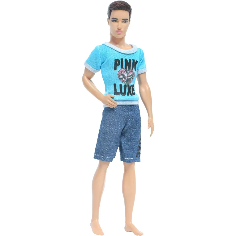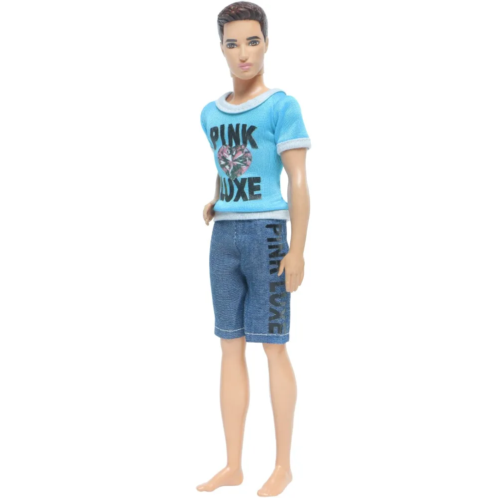 Модная повседневная одежда для мужчин, 1 комплект, узорная синяя рубашка, джинсовые шорты, брюки, аксессуары, Одежда для куклы Барби, для куклы Кена, игрушка