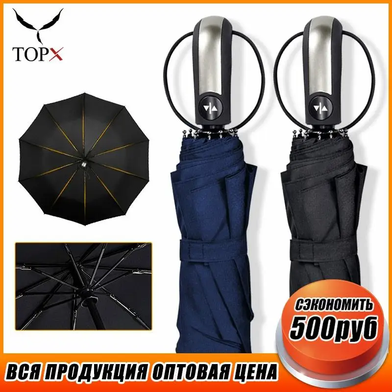 Полностью автоматический складной зонт, большой зонт от дождя, ветра, для женщин и мужчин, с 10 ребрами, компактные дорожные деловые зонтики