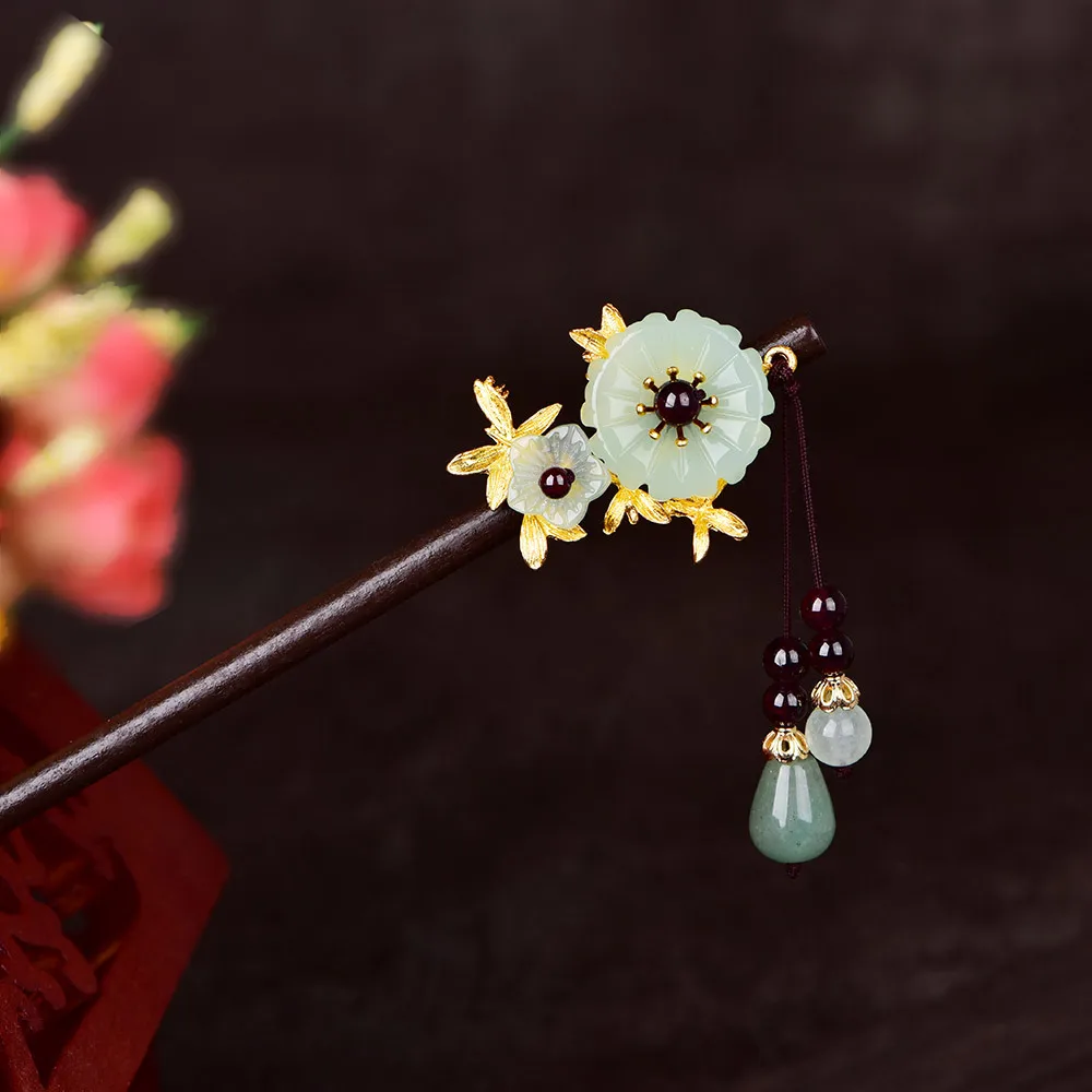 Заколки для волос из нефрита и камня, очаровательные ювелирные изделия из нефрита, амулет с резным амулетом, модные аксессуары, натуральные китайские Подарки для женщин