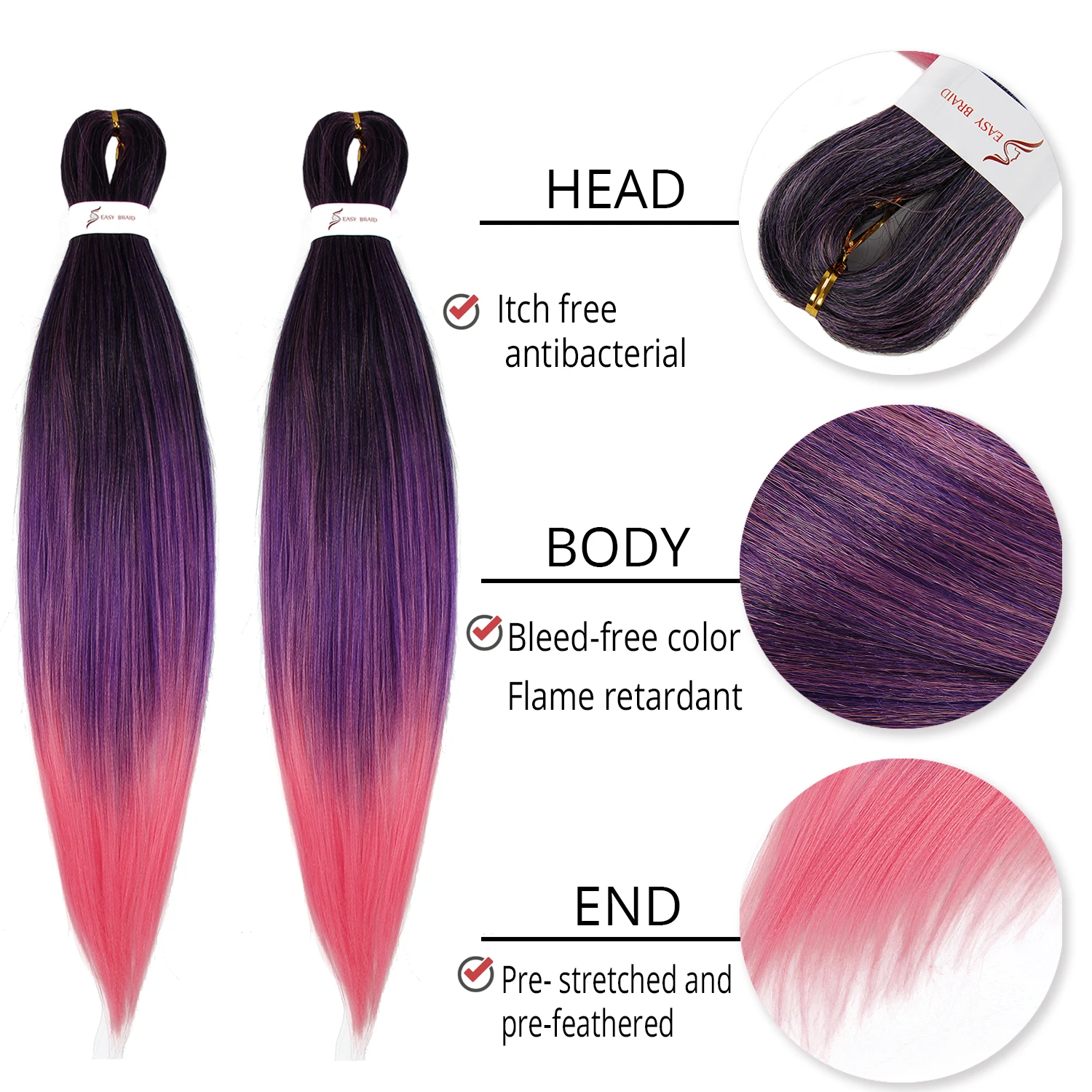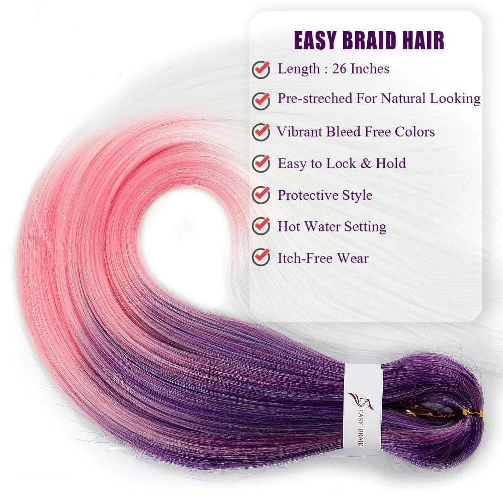 Easy Jumbo косы, волосы, вязаные крючком, предварительно растянутые, плетеные, синтетические, 26 дюймов, Омбре, смешанные цвета
