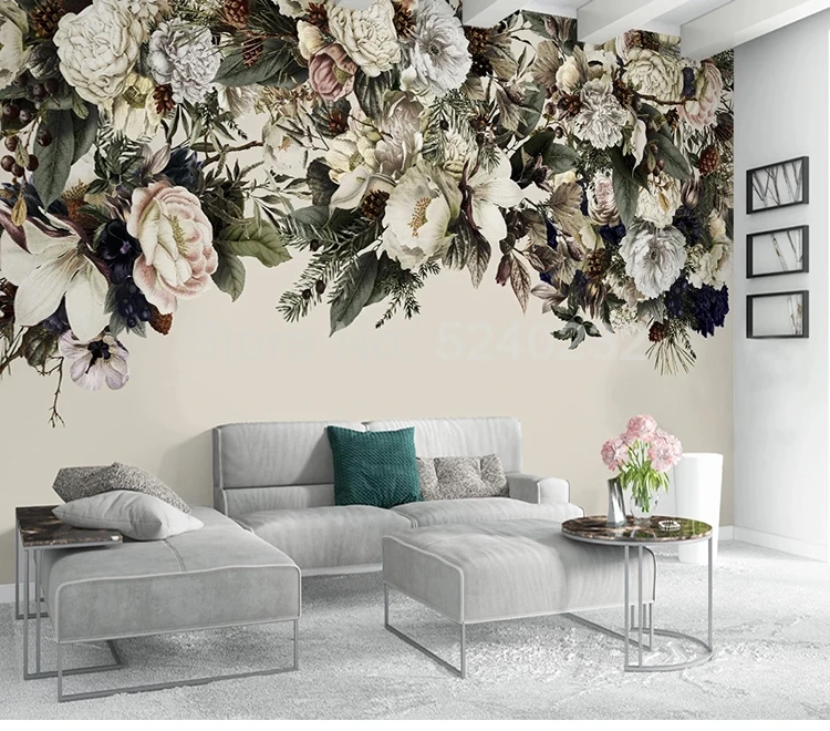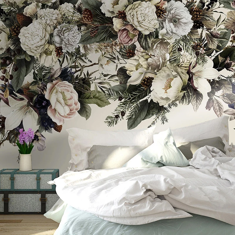Пользовательские фото Пастораль ретро цветочные цветы спальня гостиная диван ТВ фон стены украшение дома Настенные обои