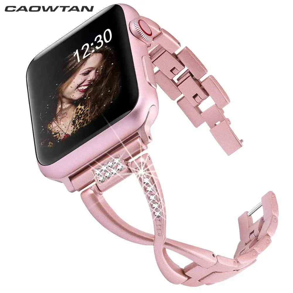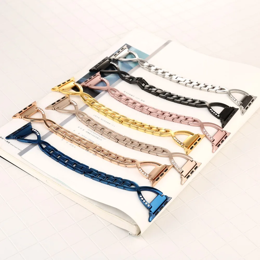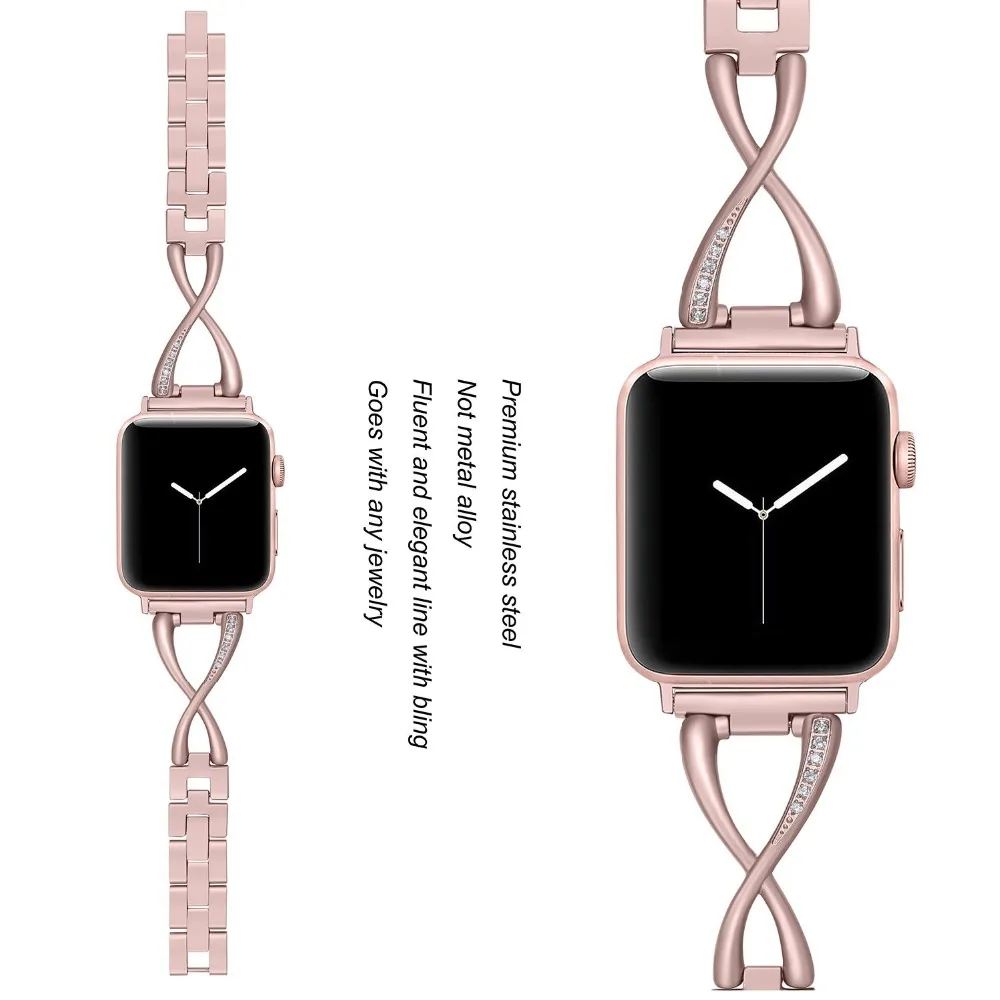 Шикарный ювелирный дизайн для ремешка apple watch для женщин. Высококачественная нержавеющая сталь. Не металлический сплав. Тонкий и гладкий.