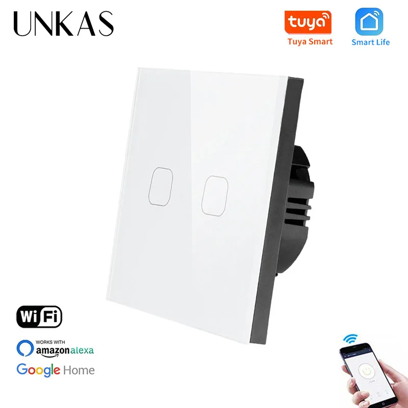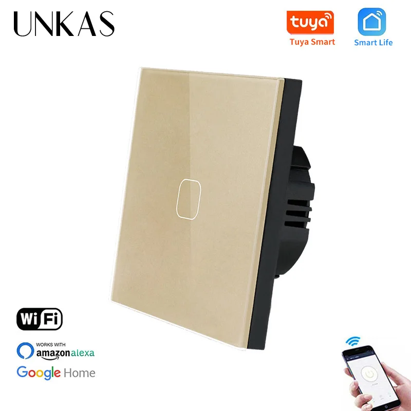 UNKAS, европейский стандарт, 1/2/3 банды, Tuya/Smart Life, WiFi настенный светильник, сенсорный выключатель для Google Home, беспроводной сенсорный светильник, переключатель