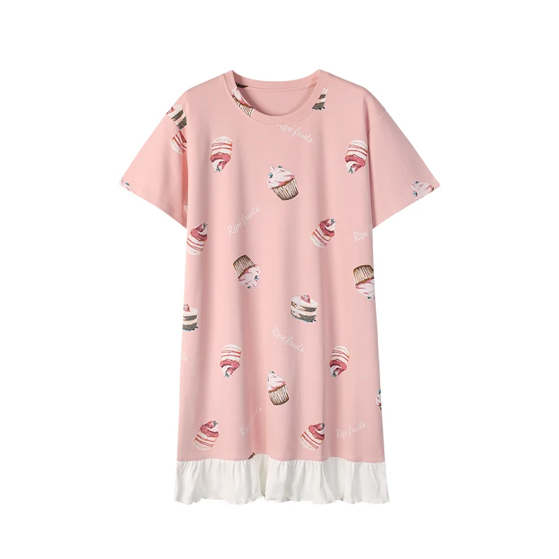 Летняя женская хлопковая одежда для сна, домашняя ночная рубашка, повседневная женская ночная рубашка, мультяшная женская ночная рубашка 3XL, женская одежда для сна