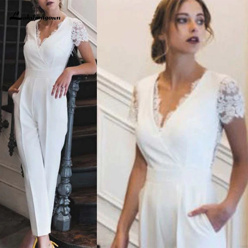Женский комбинезон с кружевной аппликацией, элегантный комбинезон с V-образным вырезом, свадебное платье, 2022