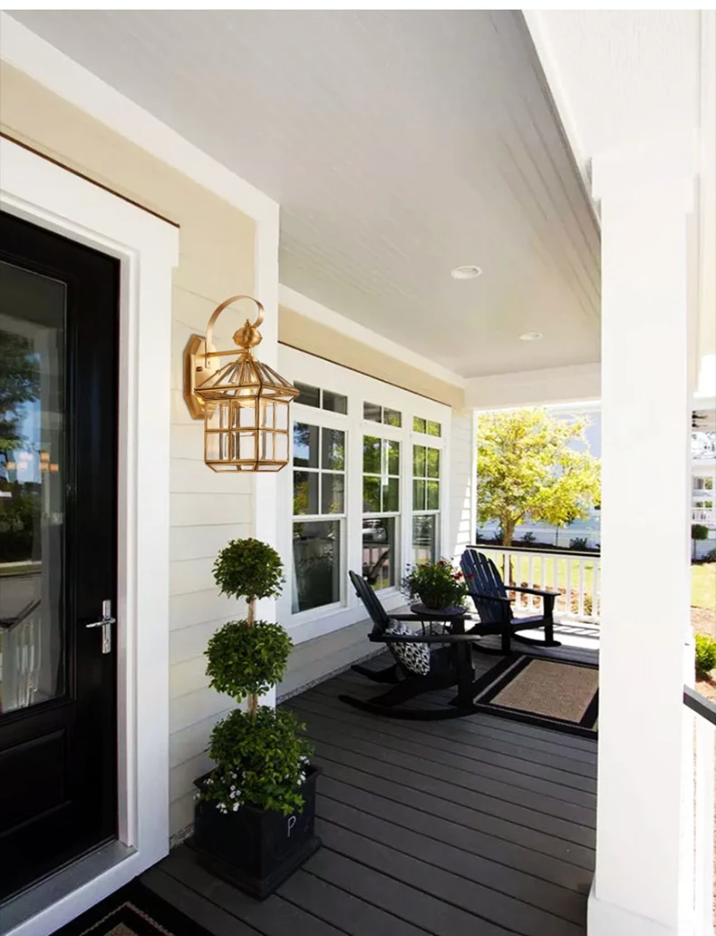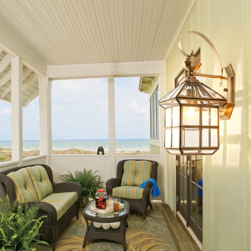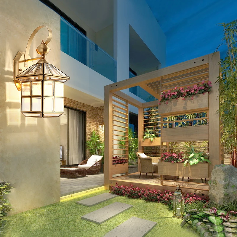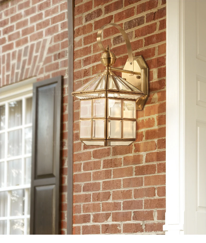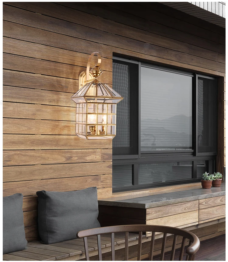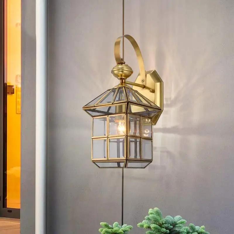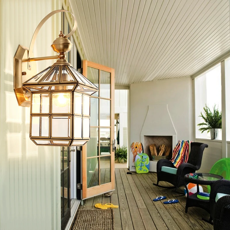 Медный Уличный настенный светильник, садовый фонарь E27, водонепроницаемый светильник, наружный светильник, лампа из полиуретана, лампа в форме бандана, стеклянный затеняющий светильник