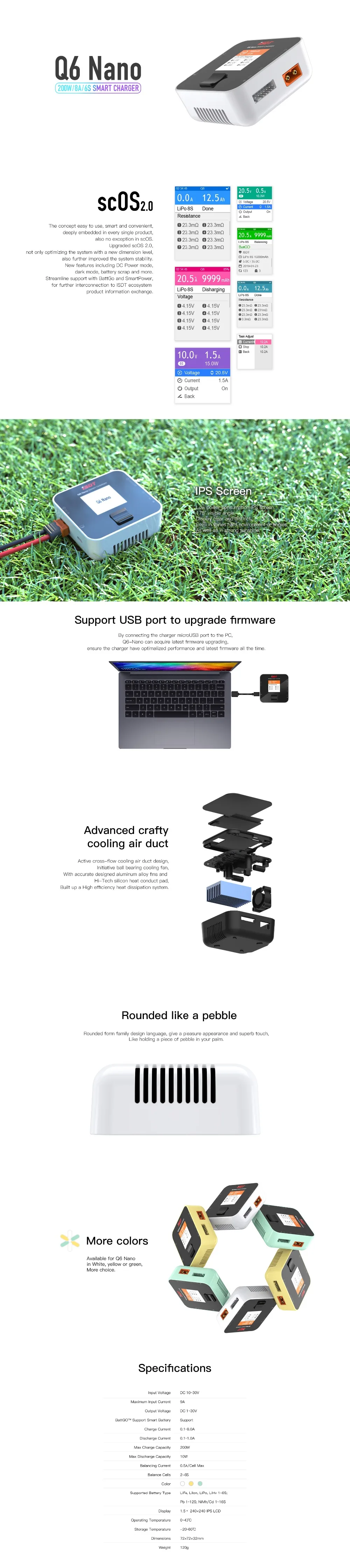 Новый ISDT Q6 Nano BattGo 200 Вт 8A цветной Карманный аккумулятор з...