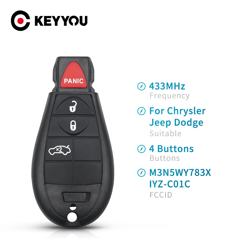 KEYYOU M3N5WY783X IYZ-C01C для Dodge Jeep Chrysler 300 Замена 433 МГц Авто 4 кнопки Fob Автомобильный Дистанционный ключ без ключа чехол для входа
