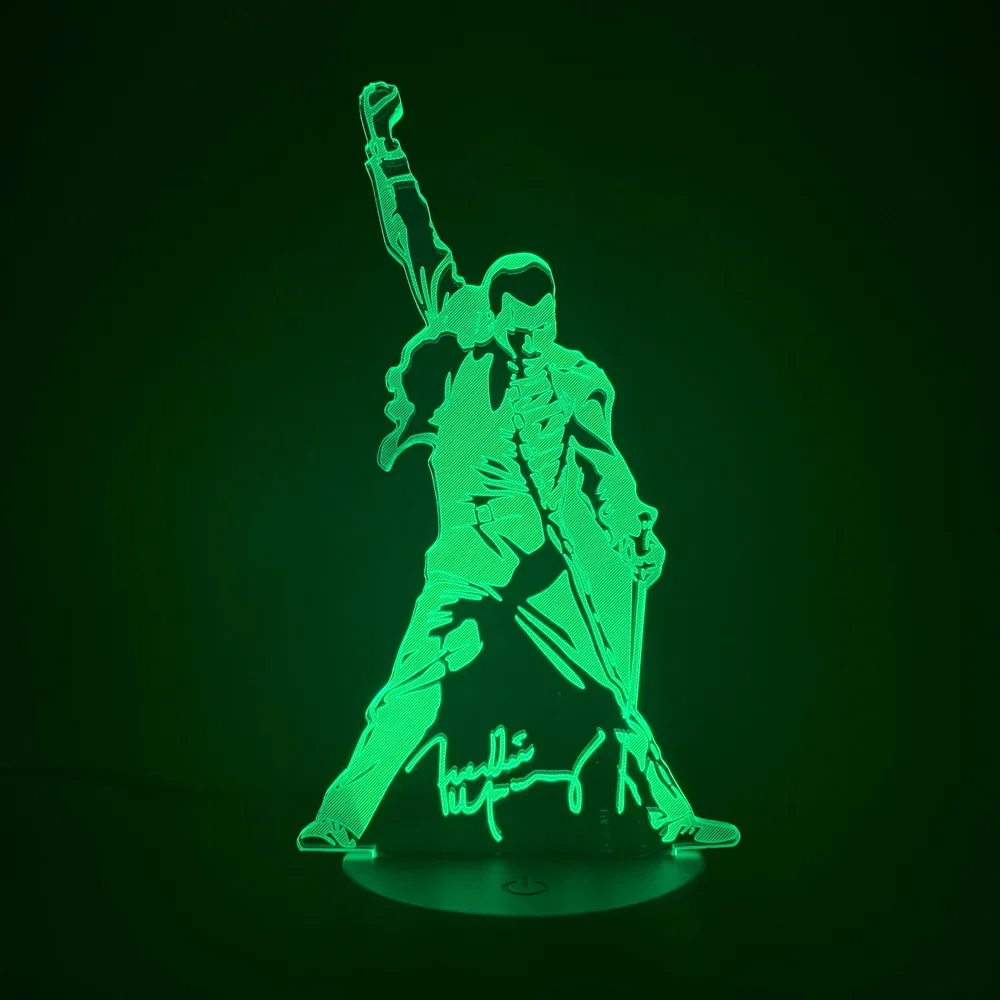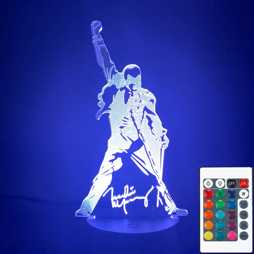 3D-3977 3D светодиодный ночсветильник Queen Freddie Меркурий меняющий цвет детский ночсветильник для офиса комнаты декоративная лампа 3d подарок