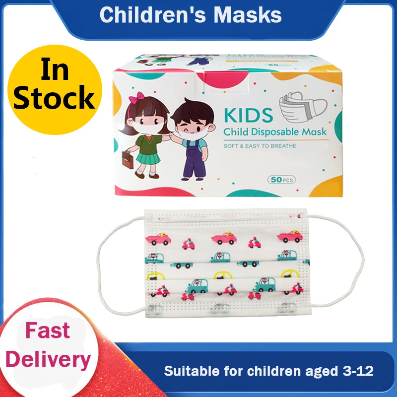 50 шт., 3-слойная детская одноразовая маска для лица с рисунком из мультфильма, мягкая дышащая Нетканая Тканевая маска Kawaii, быстрая доставка