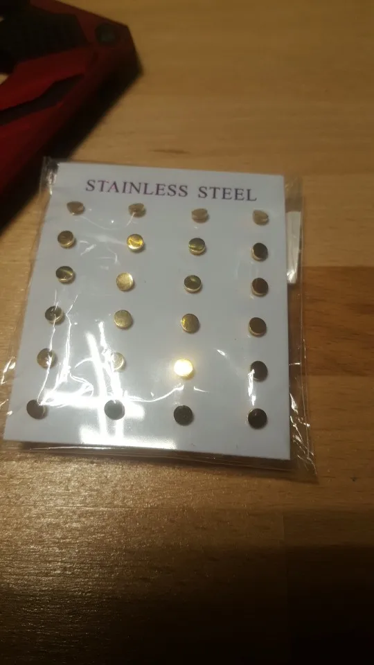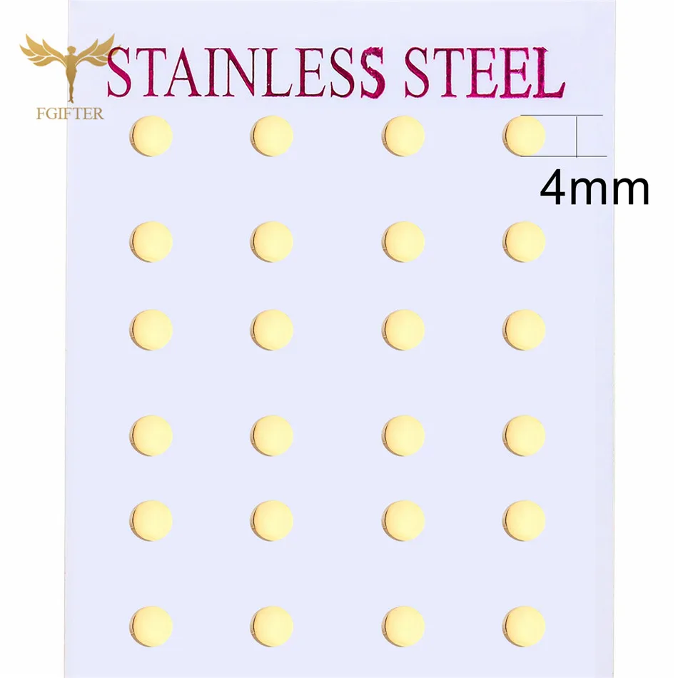 Материал: нержавеющая стальВысокое качество на 100% абсолютно новыйЦвет: Золотые круглые серьгиРазмер: 4 мм, 6 мм, 8 мм серьги-гвоздикиОбратите внимание: Круглый Стиль вырезается с помощью машины, размер имеет погрешность 0-1 мм, пожалуйста, поймите.Преимущество: не вызывает аллергии, не выцветаетКомплект: 12 пар/лот