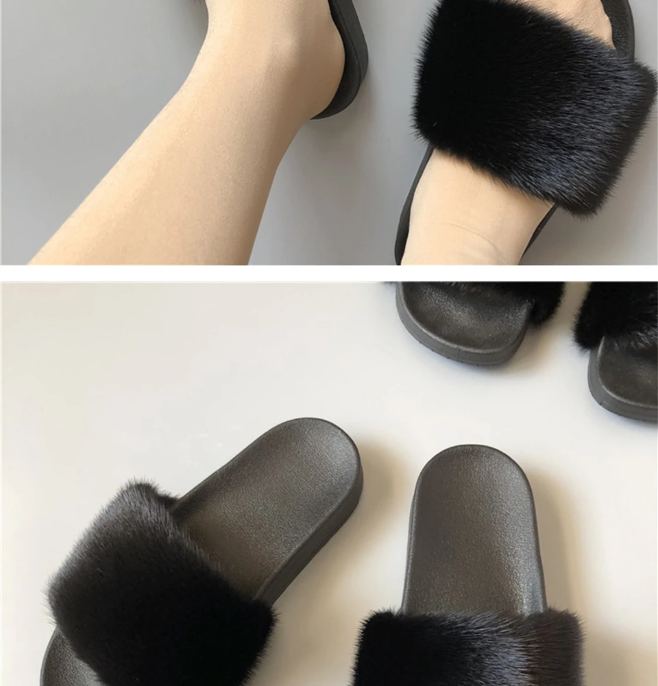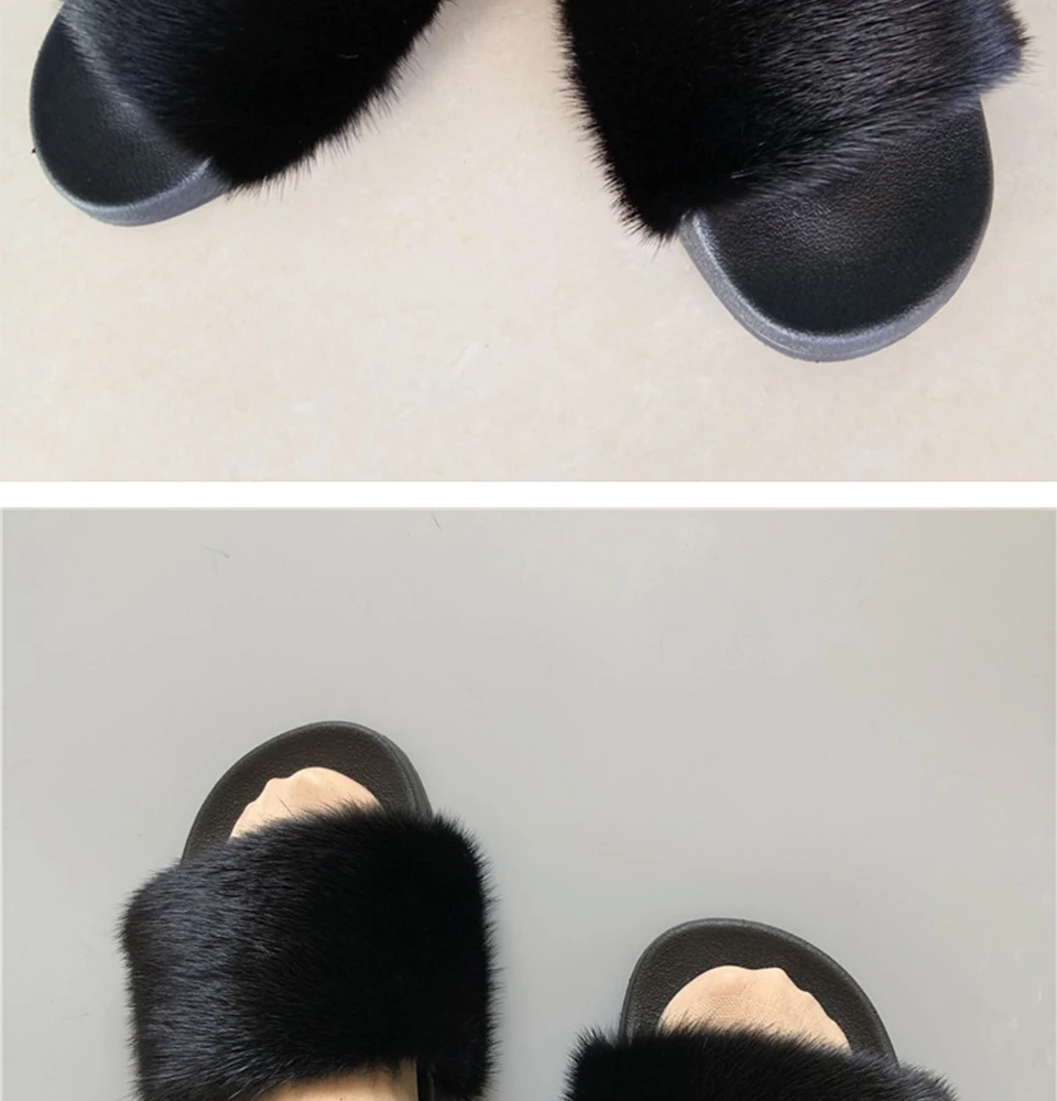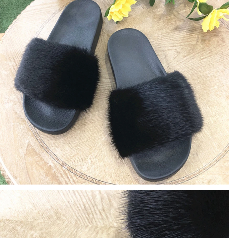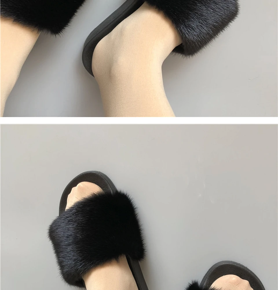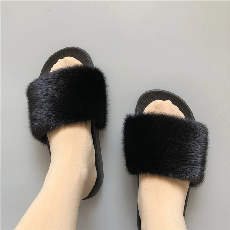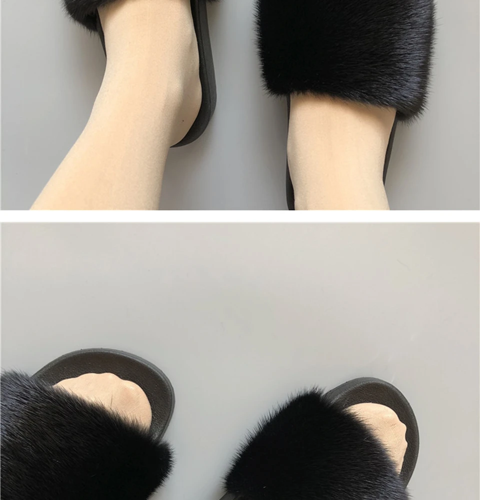 Сандалии женские с мехом норки, мягкие пушистые шлепанцы, Уличная обувь, меховые тапочки, без каблука, пикантные Роскошные, большие размеры, лето 2020