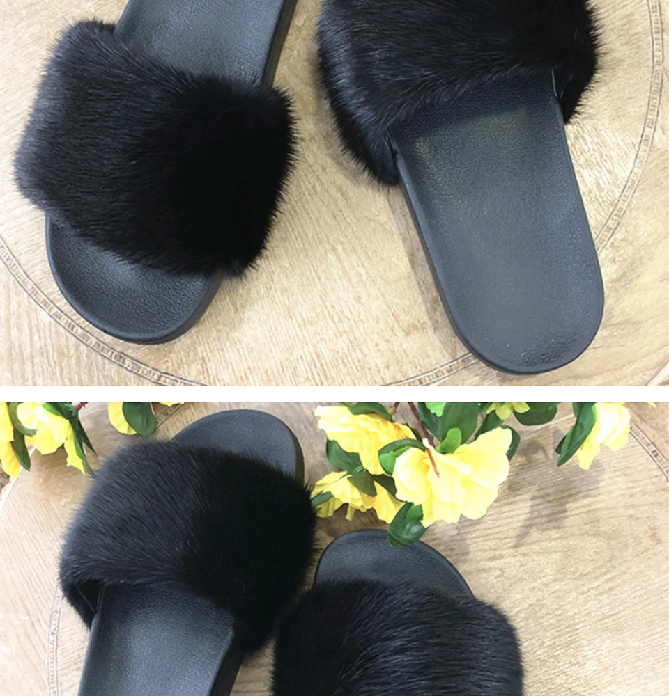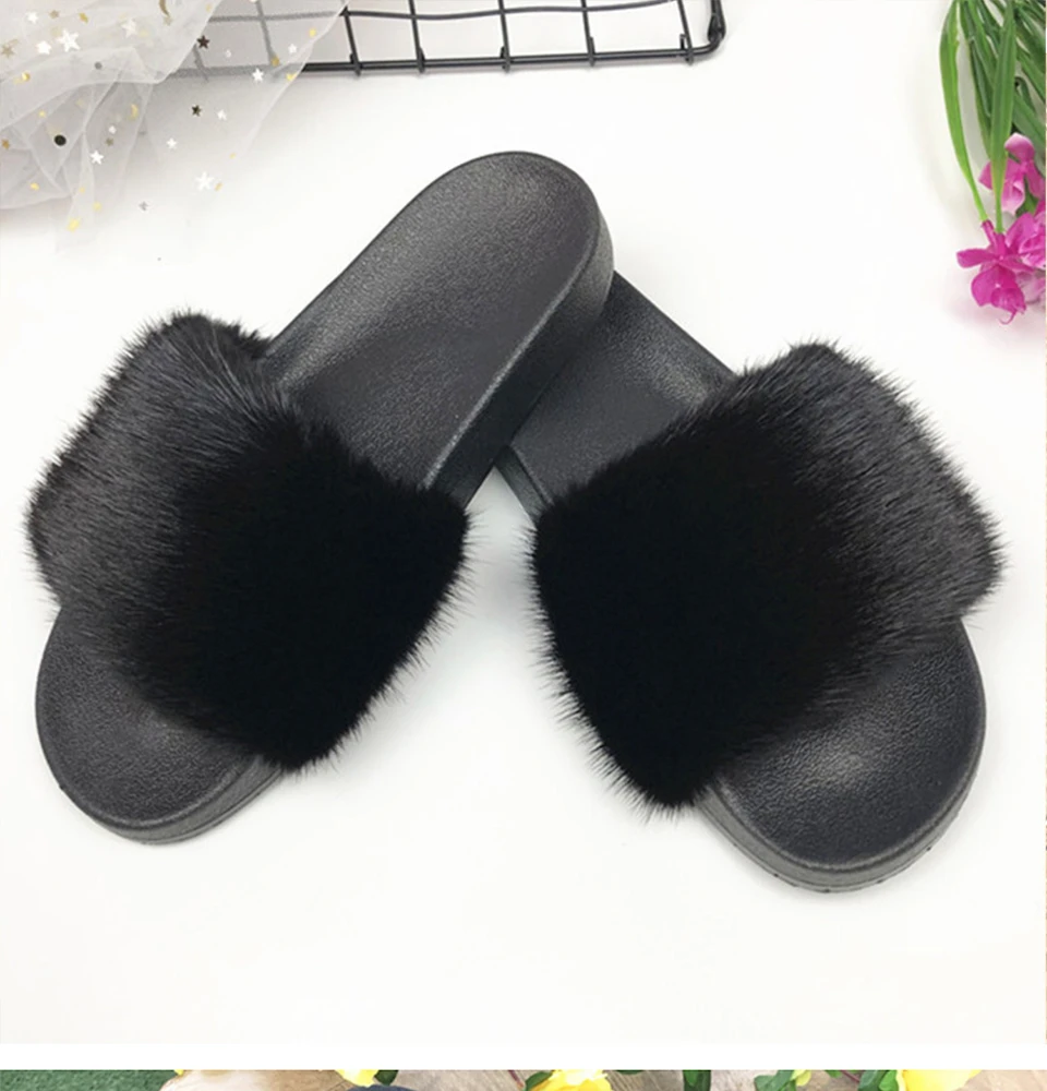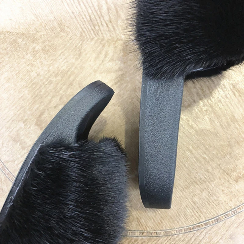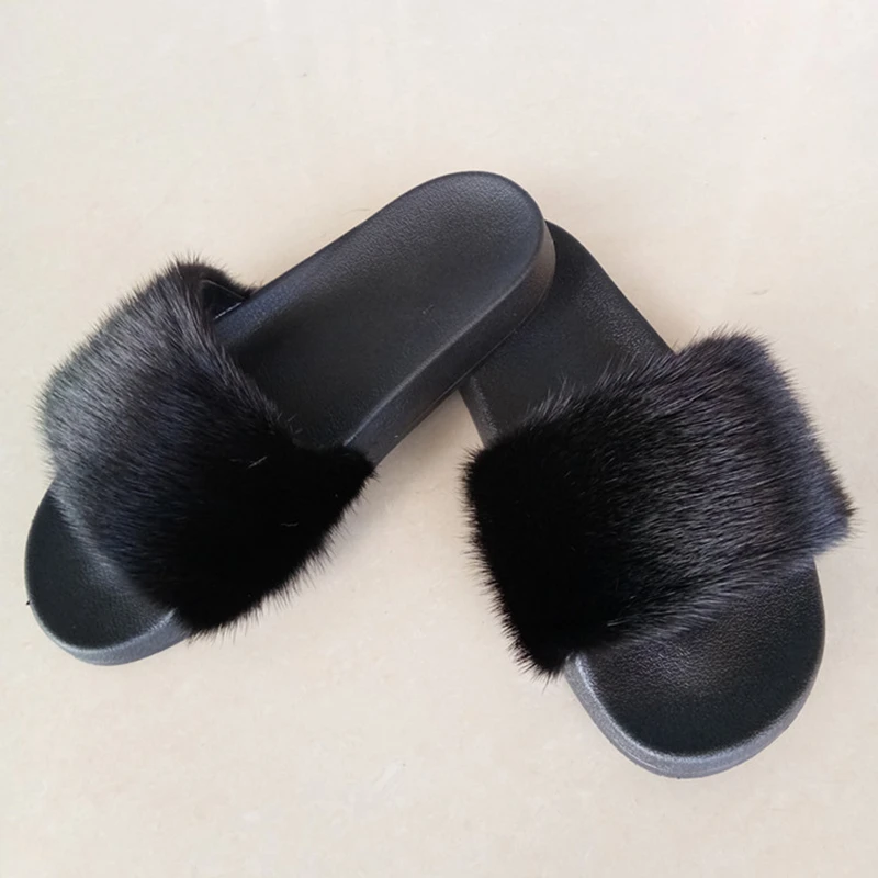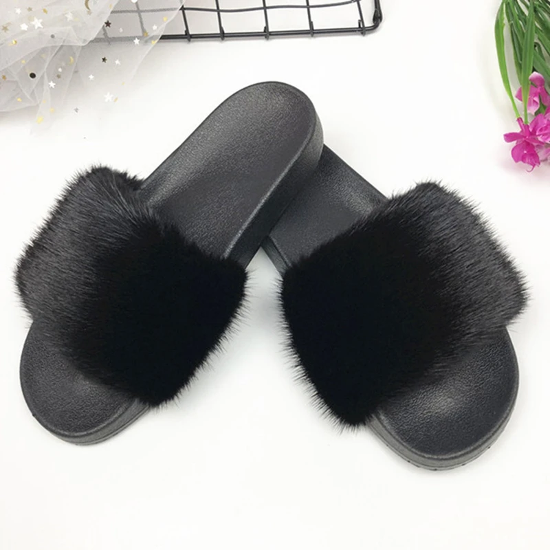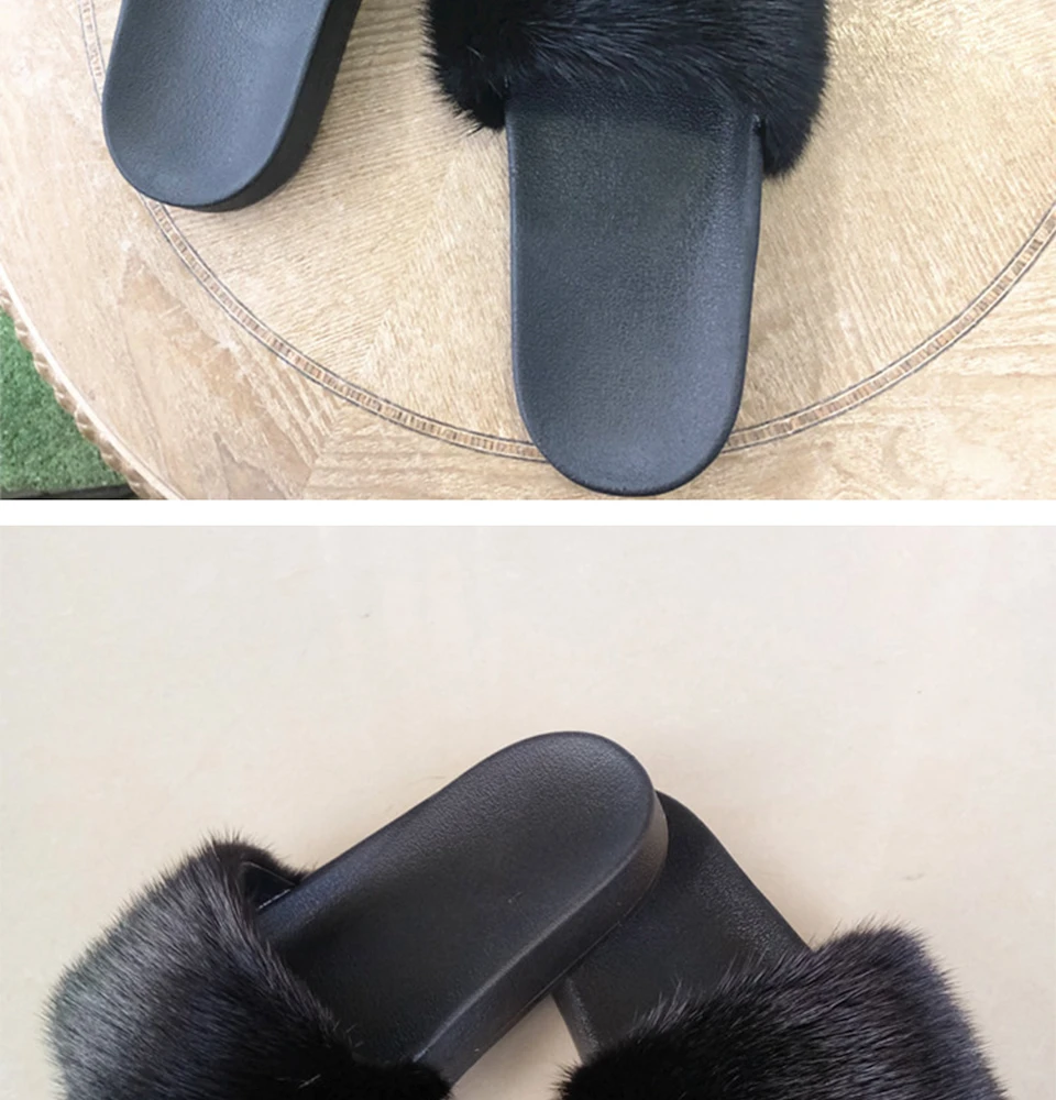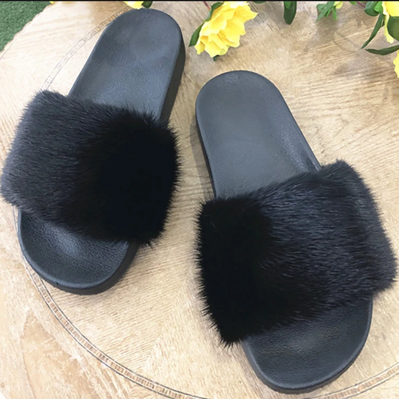 Сандалии женские с мехом норки, мягкие пушистые шлепанцы, Уличная обувь, меховые тапочки, без каблука, пикантные Роскошные, большие размеры, лето 2020