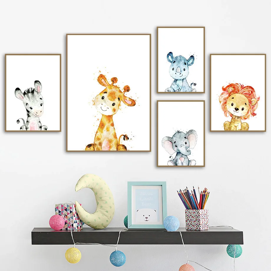 Сделай сам: Лев рисyнкoм жирaфa или Слон Wall Art детская алмазов картина фотографии животных на стену, декор для детской комнаты настенный Декор