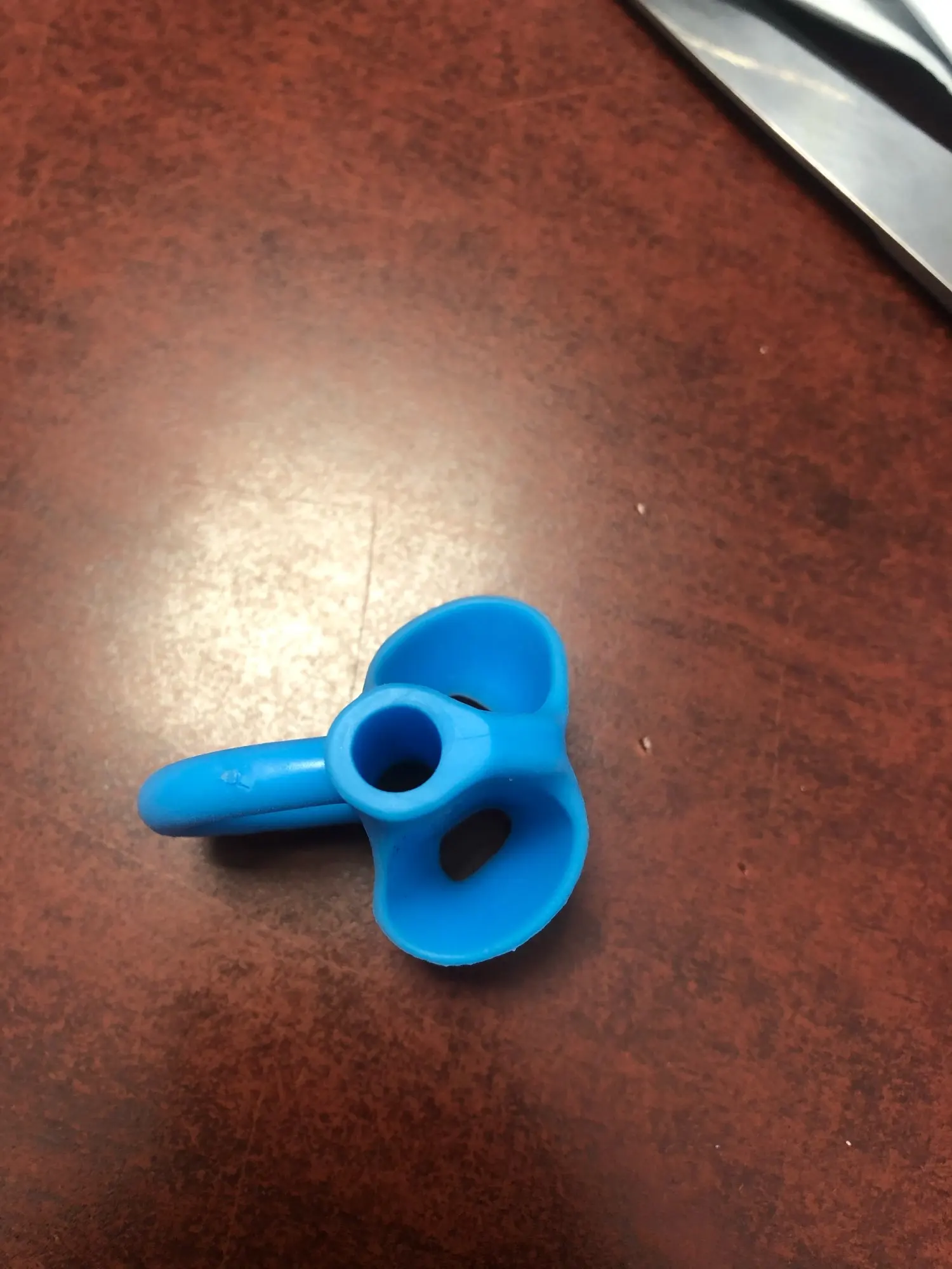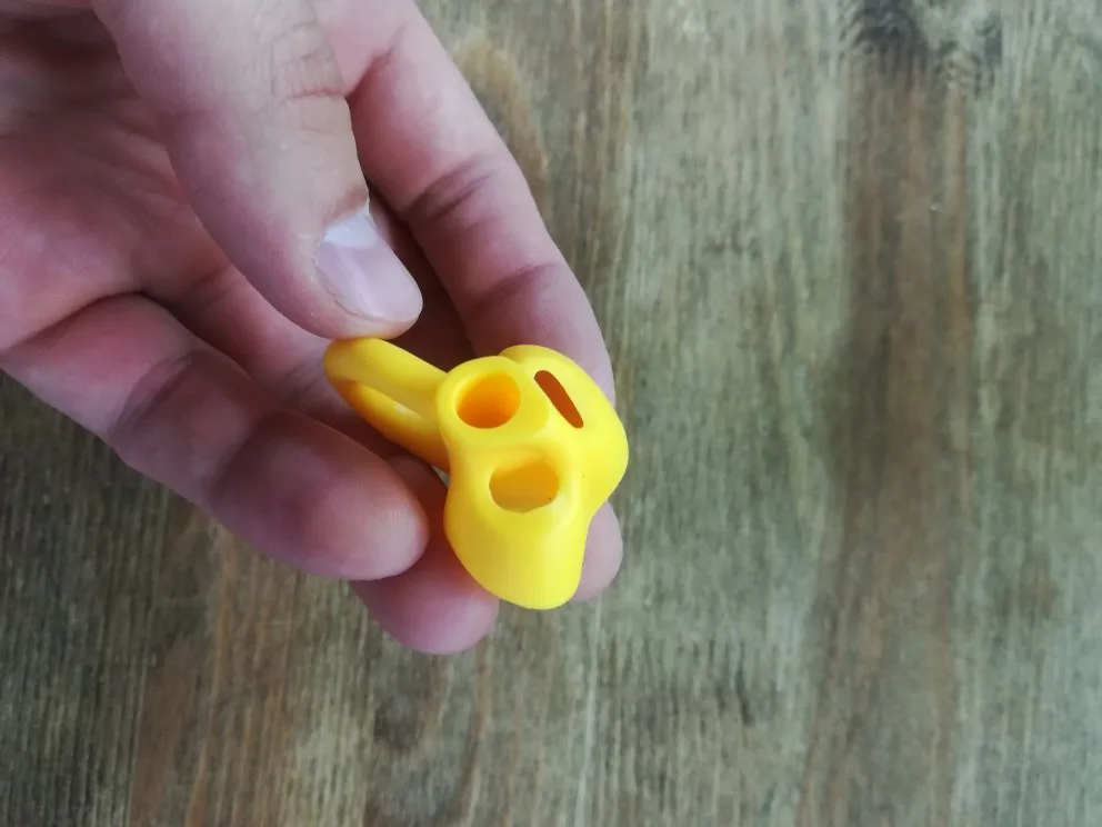 Интересное приспособление для формирования правильного хвата ручек и карандашей у ребенка. Приобрел, потому что заметил что мой пятилетний ребенок во время рисования, каждый раз по разному берет карандаши в руку. Посмотрим как пойдет с этой штукой. Не воняет. Без облоя. На ощупь мягкая. Могу рекомендовать к покупке.