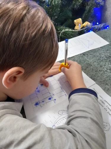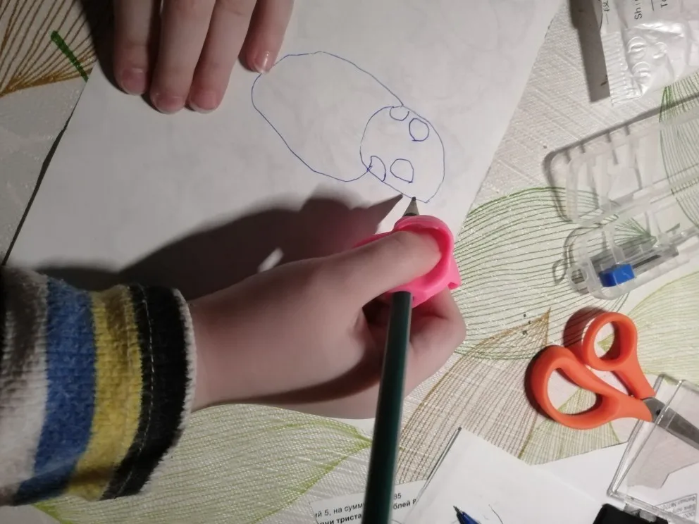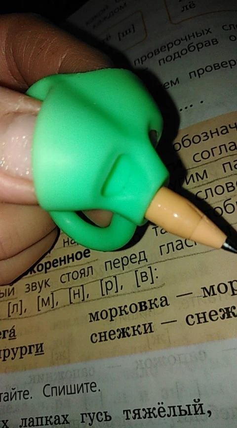 Ребенок любит. Немного великоват и удерживает устройство для фиксации карандаша. С помощью этого начала становиться правильным карандашом. Смотрите время, если положение пальцев после выхода аксессуара.