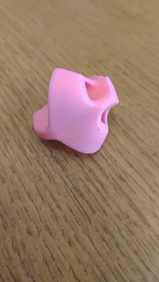 Интересное приспособление, чтобы скорректировать правильный захват карандаша или тоненькой ручки, так как отверстие небольшое. Скорее всего, оно предназначено для корректировки, именно, на начальном этапе. У маленьких детей, чтобы правильно держать ручку, чтобы навык выработать. Думаю, если много писать с таким устройством, рука быстро устанет, неудобно будет. Ребенок трёх лет ещё ручку неправильно держит, а с этим приспособлением, взяла карандаш и разукрашивала правильно. Будем пробовать приучаться, посмотрим дальше. Спасибо продавцу. Нам понравилось приспособление.
