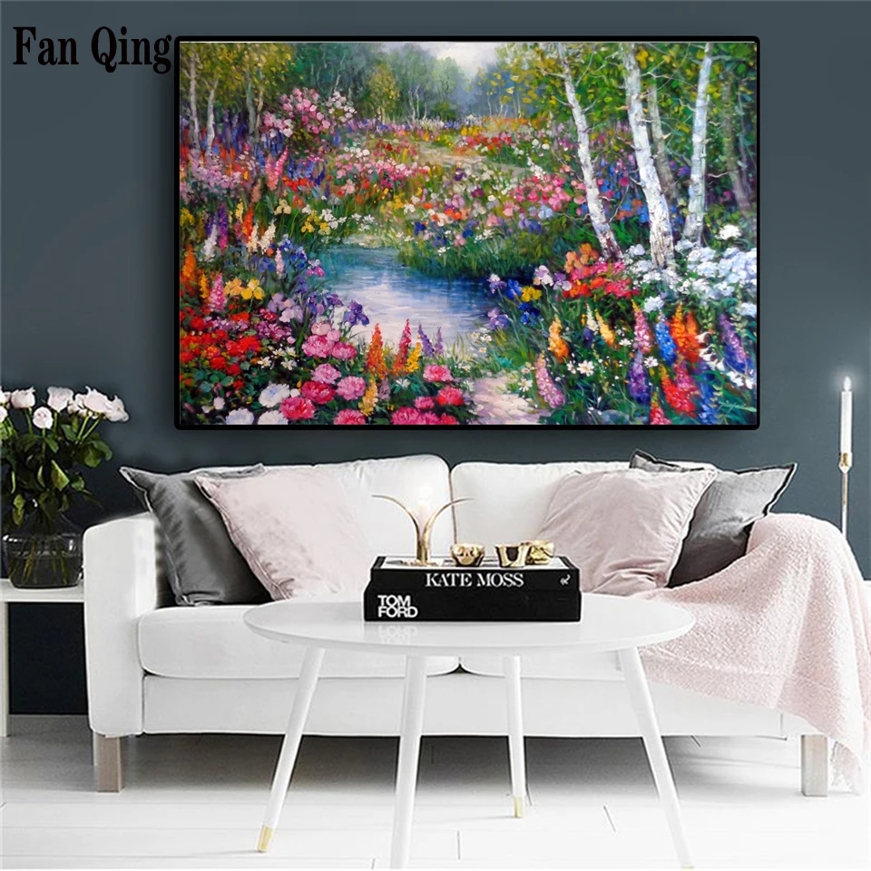 Алмазная живопись 5d "сделай сам", картины с цветами на берегу озера, квадратные алмазы, Набор для вышивки крестиком, мозаика, картина для Стразы