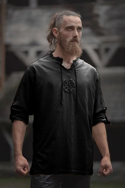 Средневековая льняная рубашка с пиратским викингом, Мужская футболк...