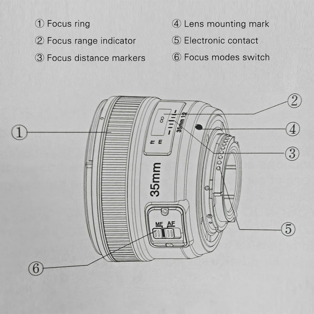 Особенности:-- Большая диафрагмаБольшая диафрагма F2.0 для размытия фона, что делает фотографию еще более веселой.-Поддержка режимов автофокуса (AF) и ручного фокуса (MF)Поддержка автофокуса и ручной фокусировки, вы можете выбрать режим фокусировки в соответствии с требованиями съемки.-Поддержка Live View (Lv) FocusФункция Open Live View (Lv) поможет вам фокусироваться на условиях съемки под высоким углом или с низким углом, или точно фокусироваться через расширенное поле зрения на мониторе.-- 7 лезвий диафрагмыДо 7 лезвий диафрагмы, вы можете запечатлеть около-круговые диффузные пластины, можно снимать 14 звездочек, сужая диафрагму.-- Оснащен индикатором расстояния фокусировкиОснащен индикатором расстояния фокусировки, который удобно Определить расстояние объекта и глубину поля.-Металлическое Крепление, прочныйВысокоточное металлическое Крепление с хромированным покрытием, эффективно улучшает прочность Металлического крепления и хорошо подходит между металлическим креплением и корпусом камеры, износостойкая, устойчивая к коррозии и долговечная.-Поддержка различных режимов съемкиПоддерживает различные режимы съемки и может отображать данные диафрагмы и другие данные в информации EXIF.-- Стеклянные линзы с многослойным покрытиемПолноразмерные продукты-это стеклянные линзы, многослойные линзы, которые эффективно улучшают скорость передачи и подавляют ghosting и клеш при съемке с подсветкой.-- Технология золотого покрытияПозолоченные металлические контакты, отличный передающий эффект с тонкой коррозионной стойкостью.Характеристики:Бренд: YONGNUOМодель: YN35mm F2NСовместимые камеры: для Nikon D600, D700, D800, D300, D300S, D3100, D3200, D3300, D3000, D5000, D5100, D5200, D5300, D7000, D7100 и т. Д.Полное покрытие угла обзора: Диагональ: 63 °Полное покрытие угла обзора: вертикальное: 38 °Полное покрытие угла обзора: по горизонтали: 54 °Фокусное расстояние линз: 35 ммСтруктура линз: 5 групп 7 лезвийЛезвия диафрагмы: 7 лезвийМинимальная диафрагма: F/19Supermacro режим: около 0,25 метрМаксимальное увеличение: около 0,23 разСистема привода: двигатель прямого токаДиаметр фильтра: 58 ммМаксимальный диаметр и длина: около Φ74*59 ммТовар Вес: 184g/6,5 ozРазмер посылка: 10,7*9*10,5 см/4,2*3,5 * 4.1inВес посылка: 315 г/11,1 унцийПосылка:1 * YN35mm F2N объектив для Nikon1 * Передняя крышка объектива1 * Задняя крышка объектива1 * Руководство пользователя (английский и китайский)1 * салфетка для чистки Zomei (бесплатный подарок)1 * ручка для объектива (бесплатный подарок)