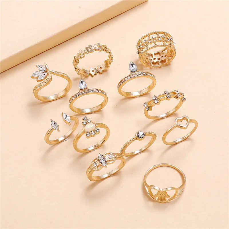 Набор золотых колец Modyle в стиле бохо для женщин, геометрический кольцо с сердцем, увелирные украшения