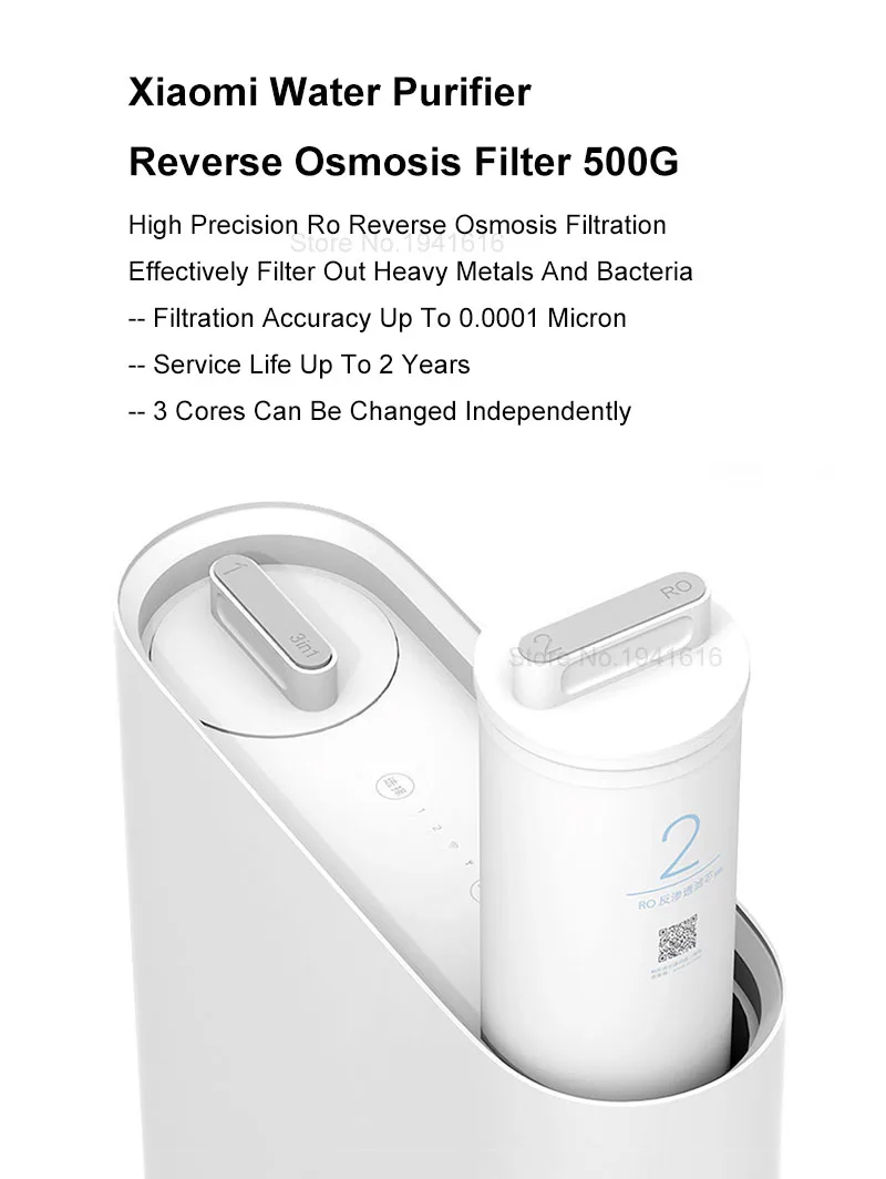 Очиститель воды Xiaomi 500G / 1A кухонный фильтр обратного осмоса (500G) Параметры продукта Вес нетто продукта: 1,25 кг Модель продукта: YM3012-500G Вес брутто продукта: 1,50 кг Размер упаковки: 123 × 123 × 406 мм Цвет продукта: белый Количество товаров: 1 Теоретическая точность фильтрации: 0,0001-0.001um (микрон) Применимый источник воды: муниципальная водопроводная вода Применимая температура воды: 5 ~ 38 ° C Рекомендуемый цикл замены: не более 24 месяцев Рабочее давление мембраны Ro: 0,4 ~ МПа Номинальный общий объем чистой воды: 7200 л (объем чистой воды) Расход проточной воды: 1,3 л/мин Расход проточной воды: 1,3 л/мин Основная функция: Теоретическая точность фильтрации может достигать 0,0001 микрон, эффективно перехватывая бактерии, тяжелые металлы, органические вещества и другие вещества в воде