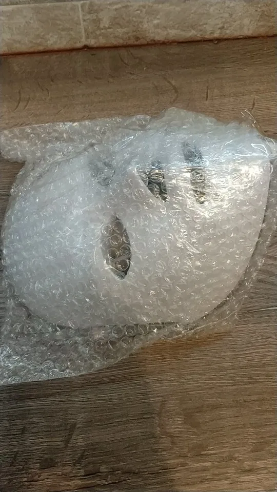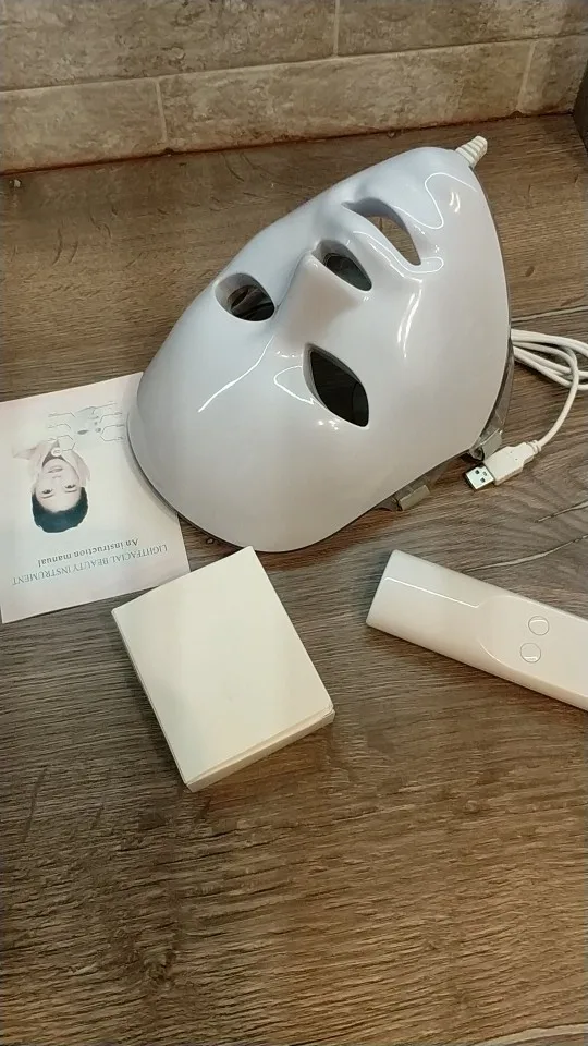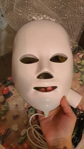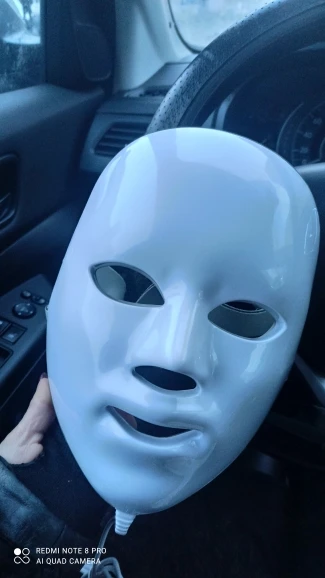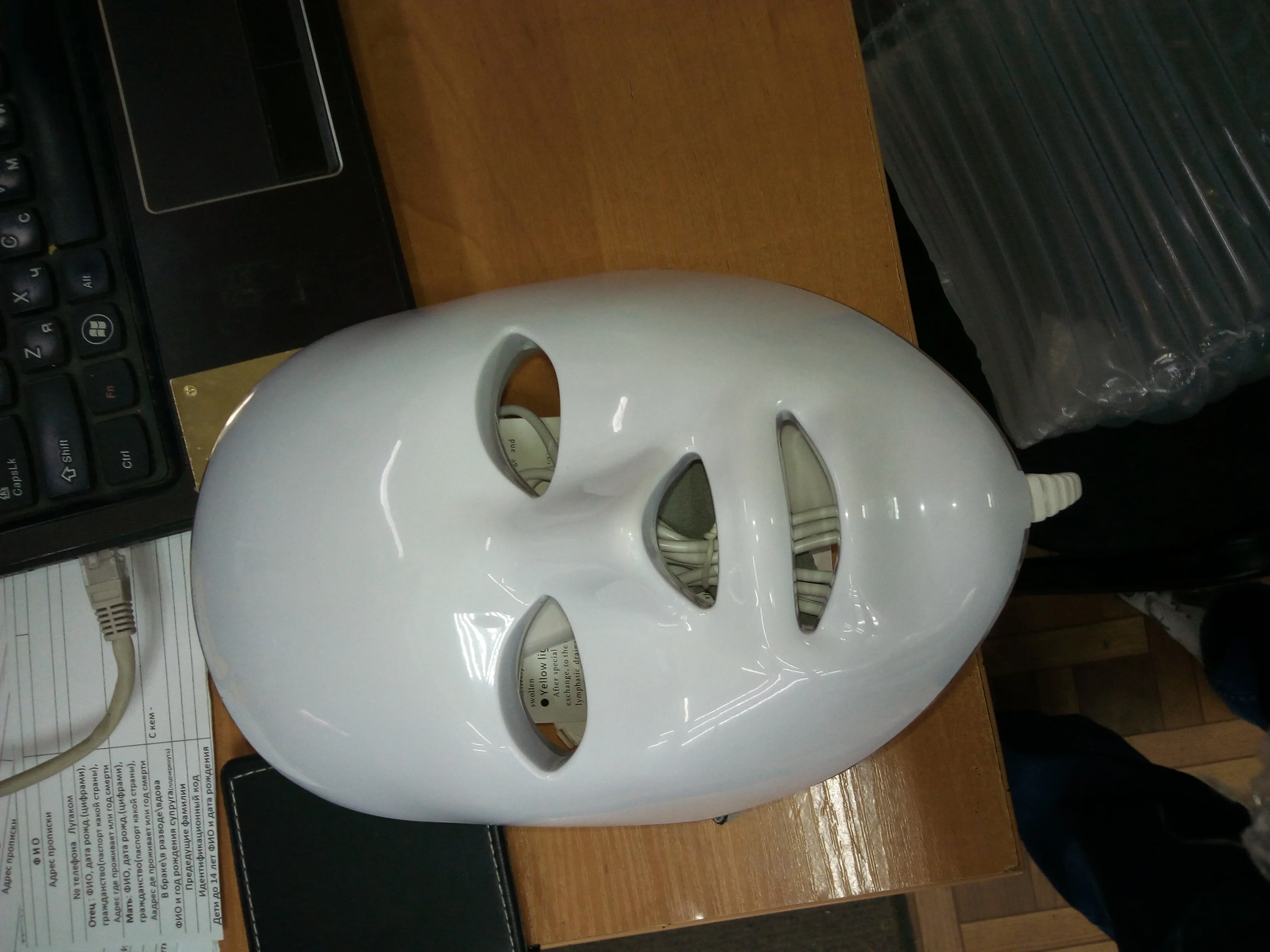 Очень хорошо и надёжно упаковано. Доставка была очень долгой. Первое впечатление - приятная на ощупь, без запаха, выглядит хорошо. Внутри маски была немного загнута пластина с диодами. Муж раскрутил и всё поправил. На лице комфортно. Удобные разрезы для глаз, носа и рта. Во время процедуры можно лёжа или сидя чем то заниматься, но недалеко от розетки. В целом, интересная покупка.