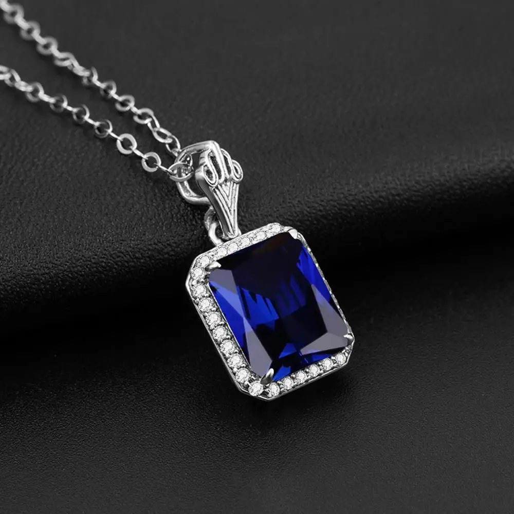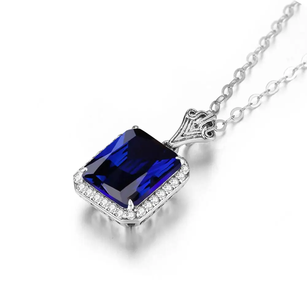 Женское ожерелье из серебра 925 пробы, с синим сапфиром