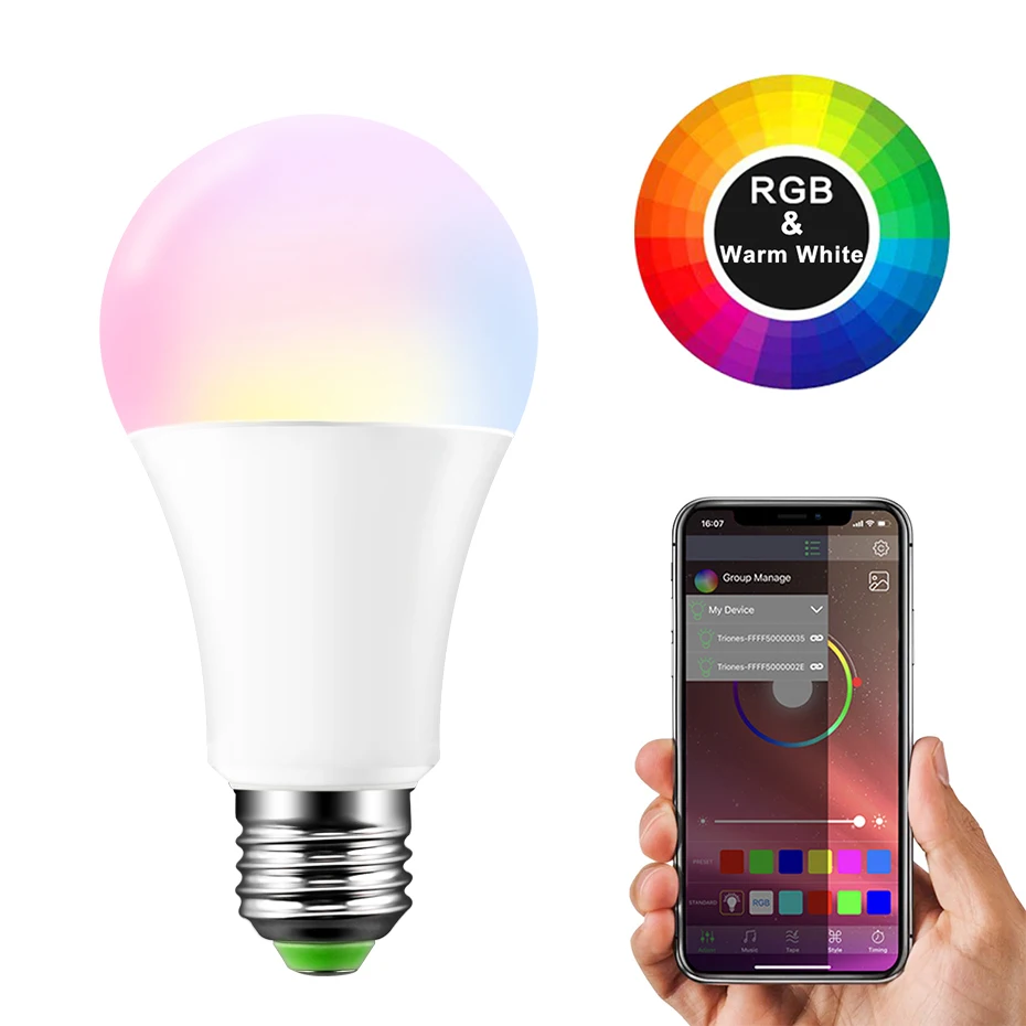 Светодиодная лампа E27, Bluetooth, 15 Вт, 85-265 В переменного тока...