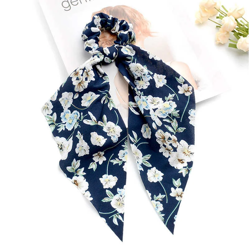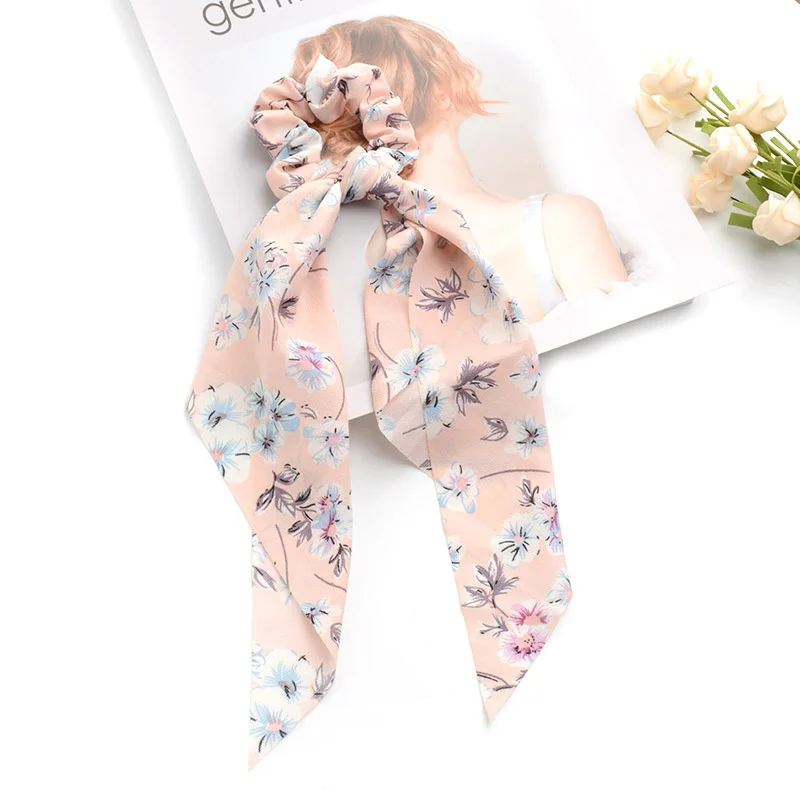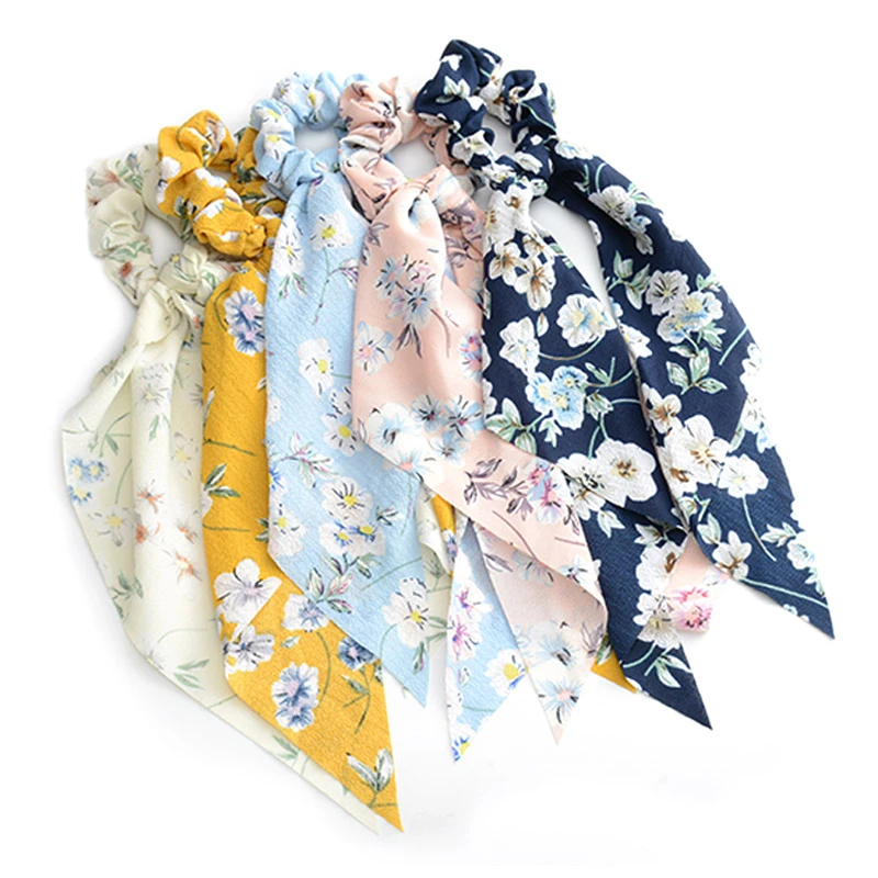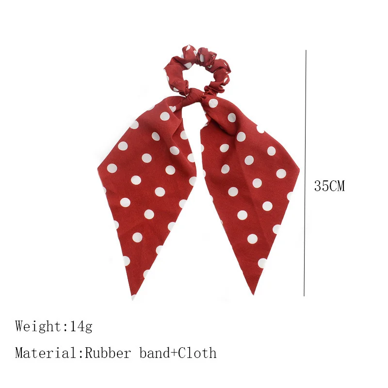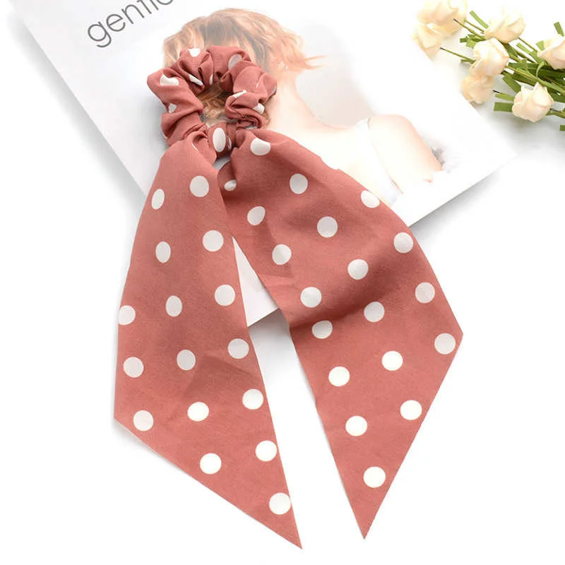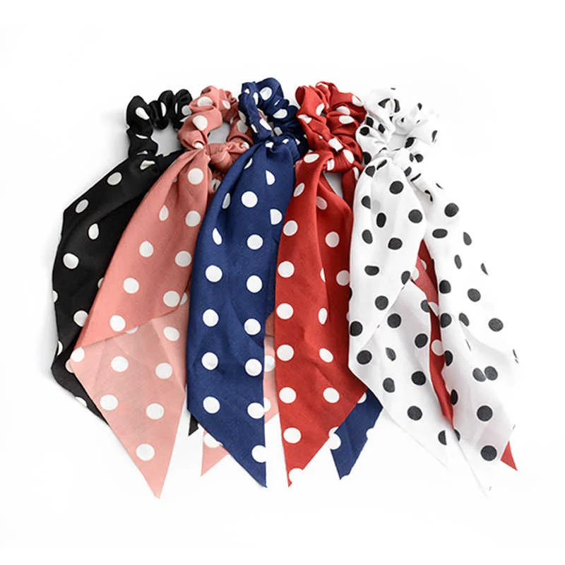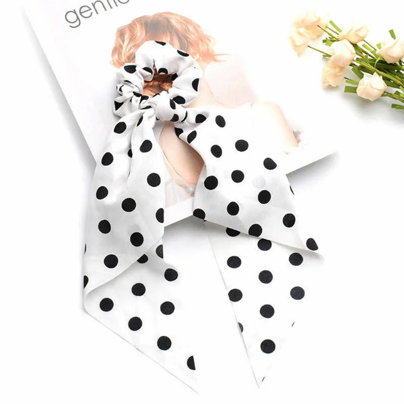 Модные Длинные ленты для шарфа, резинки для женщин с бантом в горошек, эластичные повязки для волос, держатель для конского хвоста для девочек, резинка, аксессуары для волос