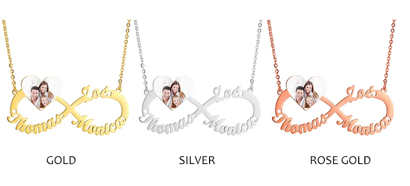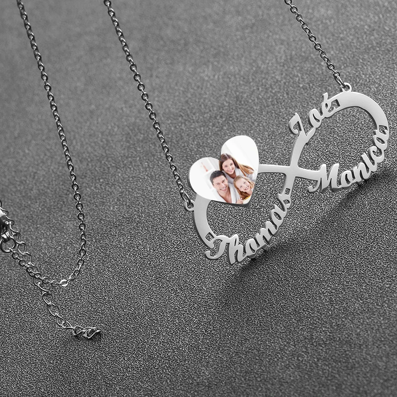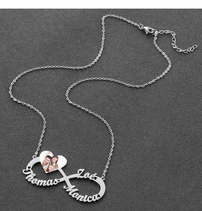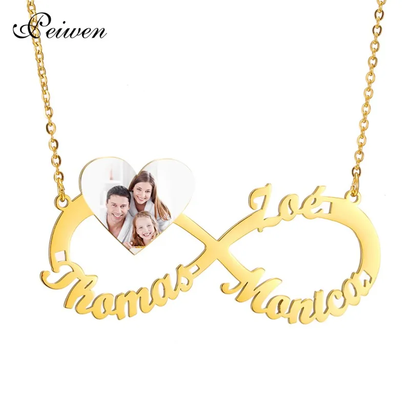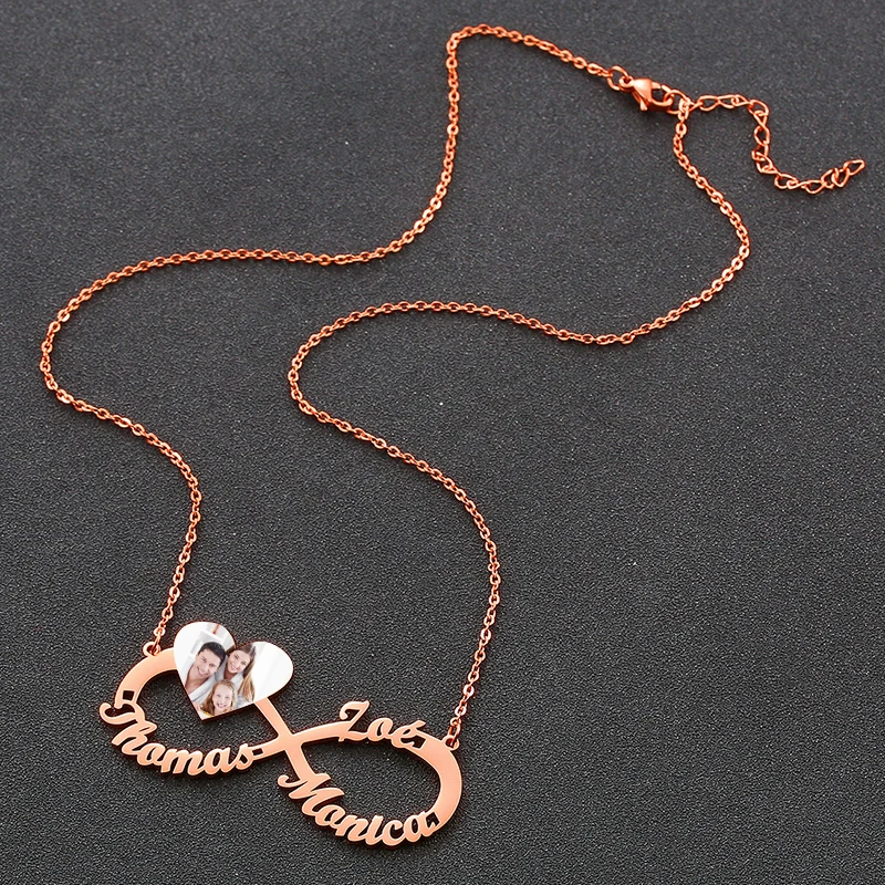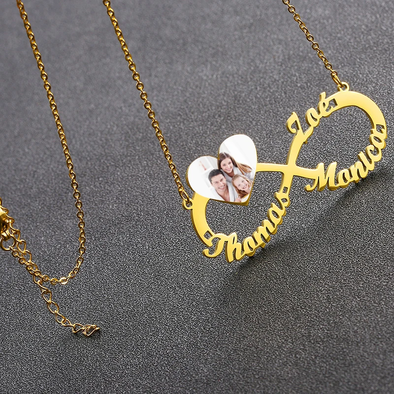 Ожерелье с именной табличкой бесконечности в форме сердца из нержавеющей стали, персонализированные ожерелья с именем и цветной фотографией для женщин и мужчин, ювелирные изделия для пар