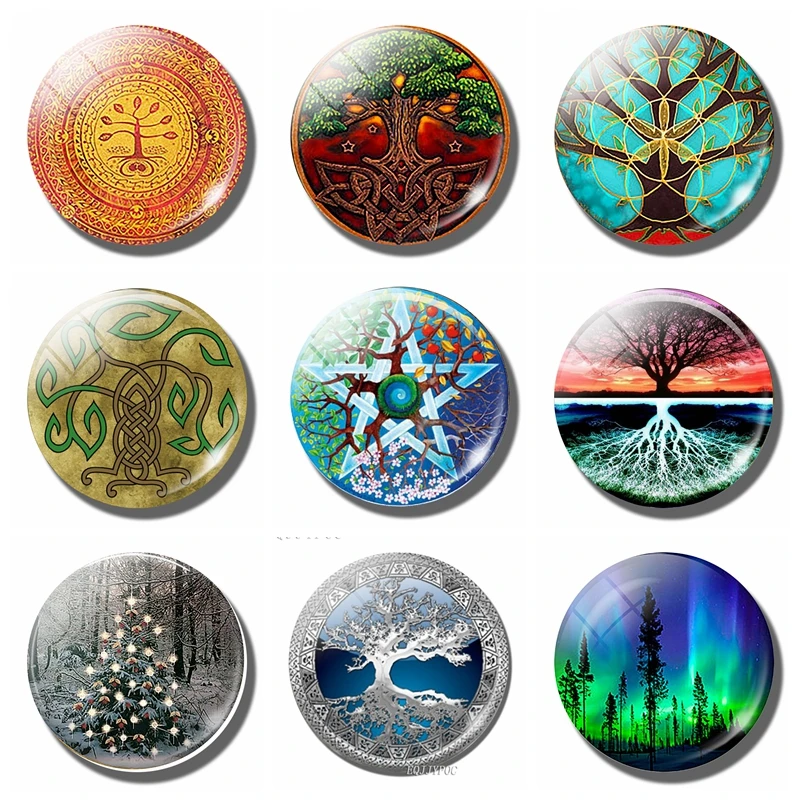 Магнит на холодильник Дерево жизни, 30 мм, Инь Янь, стеклянный кабо...