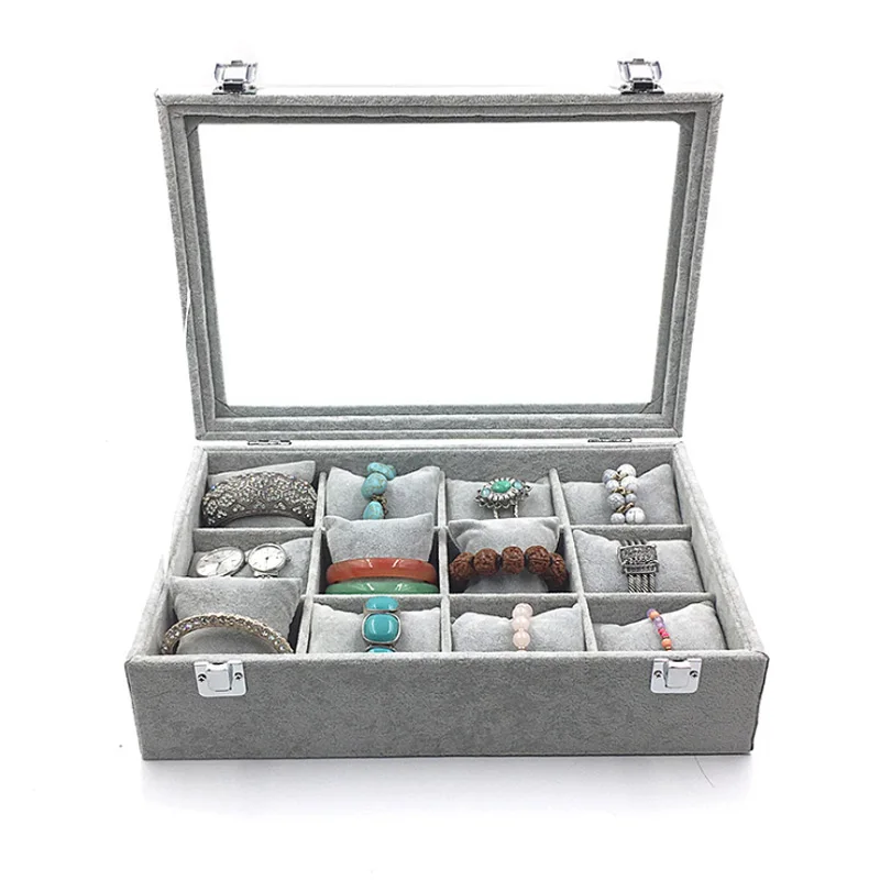 Коробка для хранения часов, светло-серого цвета, подставка для дисплея, пылезащитное стекло, прозрачная коробка для часов, реквизит для дисплея, Маленькая подушка, оптовая продажа