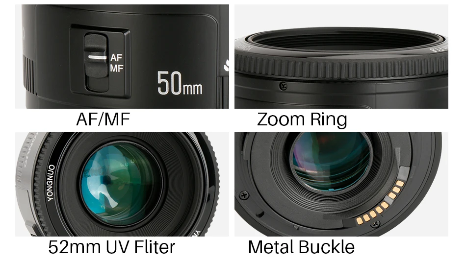 Для Canon: 350D, 450D, 500D, 600D, 650D, 700D, 60D,70D, 10D, 20D, 30D, 40D, 50D,1D / 1D Mark II,1D Mark III,1D Mark IV,1Ds,1Ds Mark II,1Ds Mark III,5D, 5D Mark II,5D Mark III,1DX, 6D, 7D, 7D Mark II Особенности: F1.8 Большая диафрагма, виртуальный фон, что делает фотографию более увлекательной. Поддержка автофокуса и ручного режима фокусировки. Использует золотое покрытие для металлических контактов, эффективно улучшает проводимость сигнала и устойчивость к коррозии. Поддерживает M/AV/TV/P и другие режимы съемки камерой, и может быть отображен данные диафрагмы в сведениях EXIF. Поддерживает полнокадровые и форматные камеры APS-C. Линзы с многослойным покрытием эффективно улучшают коэффициент пропускания. Внешняя конструкция изготовлена из высококачественного пластика, общий вес всего 120 г, что удобно для съемки на улице. Характеристики: Диапазон углов: Диагональ-46 °; ВЕРТИКАЛЬ-27 °; Уровень-40 ° Структура линз: 5 групп 6 ломтиков Минимальная диафрагма: f/22 Ближайшее расстояние фокусировки: 0,45 метра Максимальное увеличение и Поле зрения: 0,15*160*240 мм (0,45) (на расстоянии до 0,45 метра) Диаметр фильтра/количество в наличии: 52 мм/1 Размер товара: 7*4,6 см/2,8 * 1.8in (Д * В) Вес изделия: 120 г/4,21 унции Посылка: 8,5*8,5*9 см/3,3*3,3 * 3.5in Вес посылка: 194 г/6,83 унции Комплектация только для линз: 1 * yn50 мм F1.8 объектив 2 * защитные чехлы 1 * Руководство пользователя (китайский и английский) Посылка тация линз с наборами: 1 * yn50 мм F1.8 объектив 2 * защитные чехлы 1 * Руководство пользователя (китайский и английский) 1 * Ультрафиолетовый фильтр Zomei 52 мм 1 * ткань для чистки Zomei 1*58 мм бленда объектива 1 * ручка для объектива 1 * сумка для объектива 1 * воздуходувка