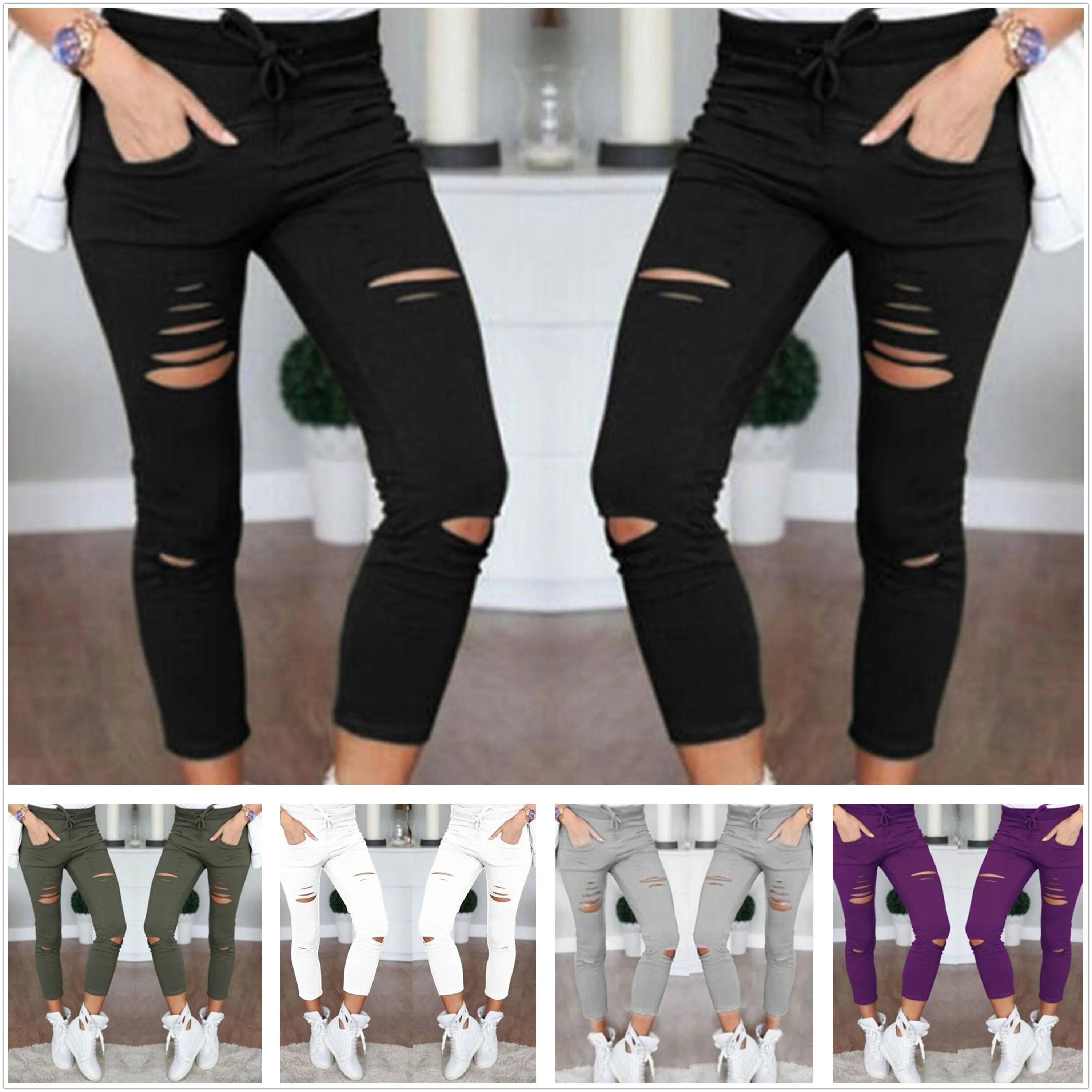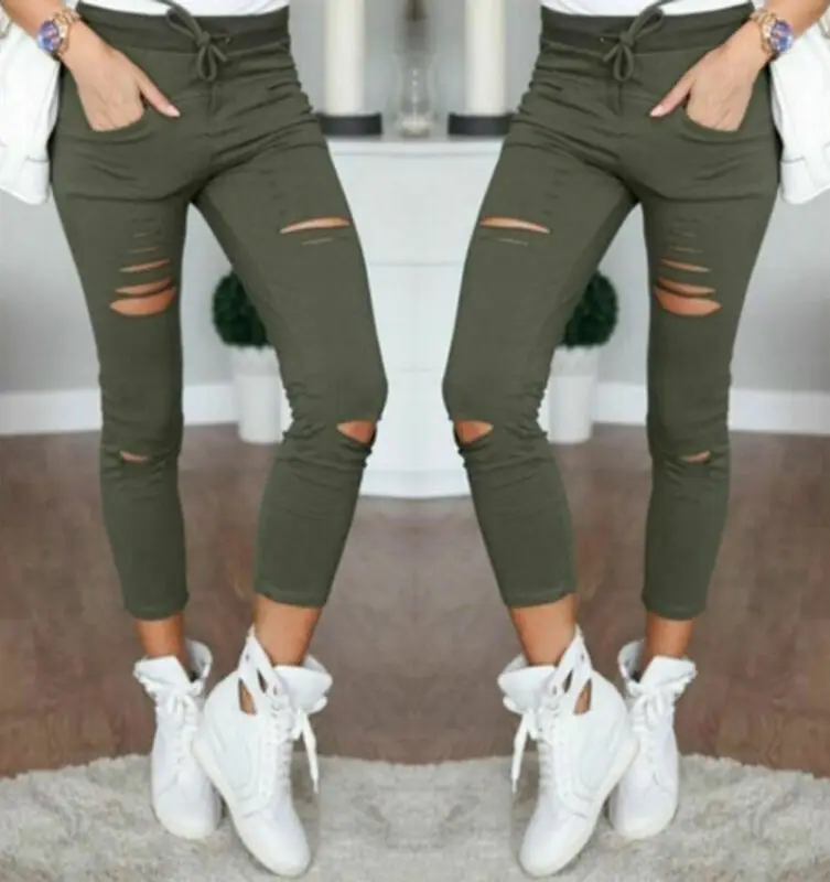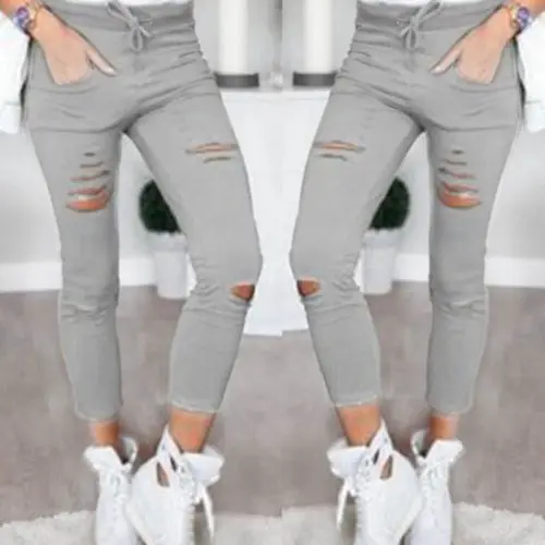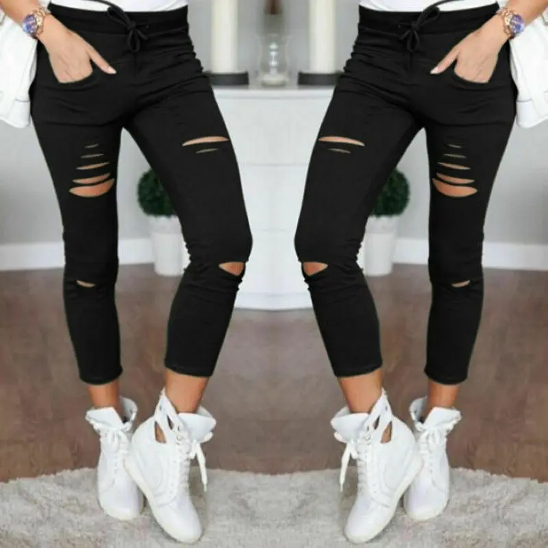 Новинка 2020, модные повседневные женские пикантные декорированные джинсовые брюки-карандаш с высокой талией, брюки, спортивная одежда