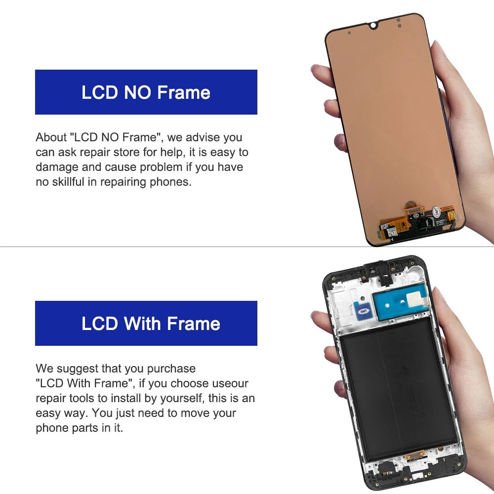 100% протестированный экран A50 с рамкой для Samsung Galaxy A50 A50...