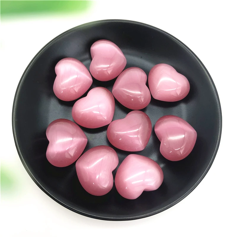 1 шт. милые розовые камни в форме кошачий глаз, кристаллические камни в форме сердца, Исцеляющие камни, Подарочный декор, декоративные натуральные кварцевые кристаллы