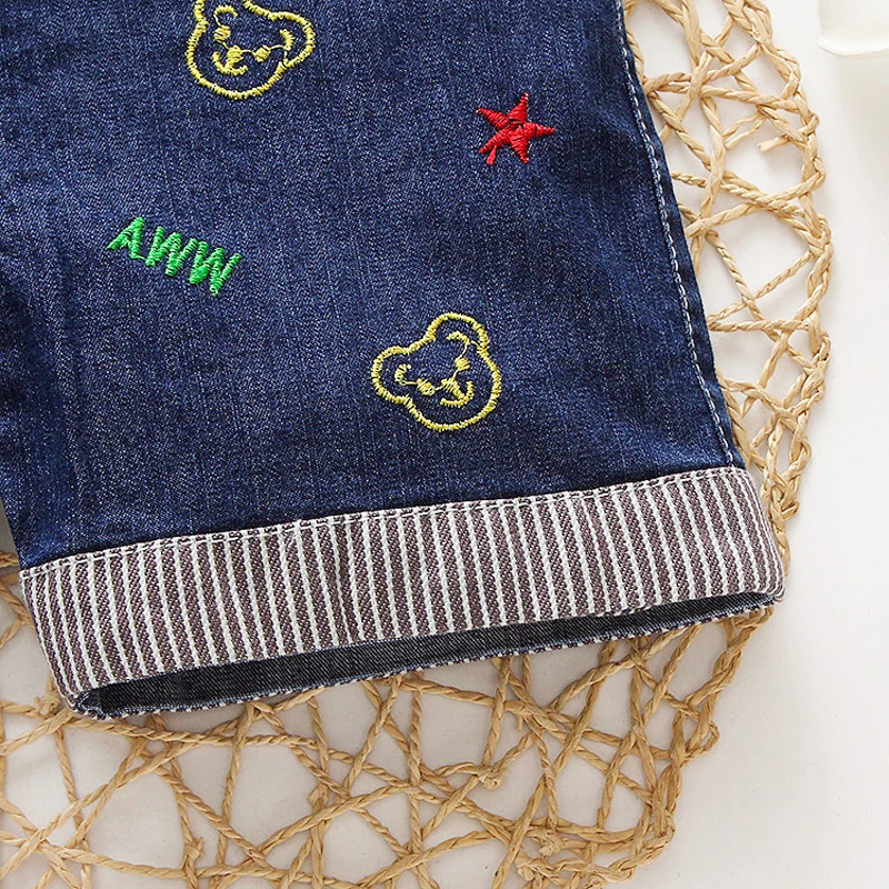 Детский джинсовый комбинезон для мальчиков и девочек, с шортами