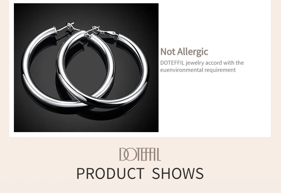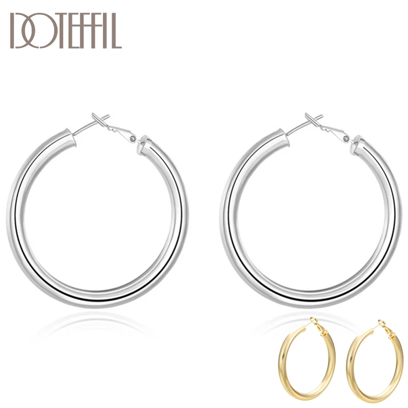 Женские Круглые Гладкие серьги-кольца DOTEFFIL из стерлингового серебра 925 пробы/золота 50 мм, модные вечерние ювелирные изделия для свадьбы