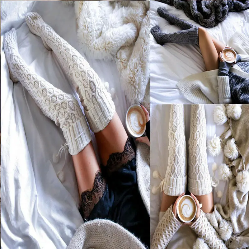 Женские зимние трикотажные хлопковые чулки, теплые Гольфы выше колена, вязанные крючком Леггинсы