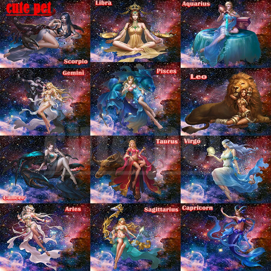 Алмазная картина с двенадцатью созвездиями, полноразмерная 5D Вышивка, круглая вышивка крестиком, мозаика для творчества, домашний декор для стен