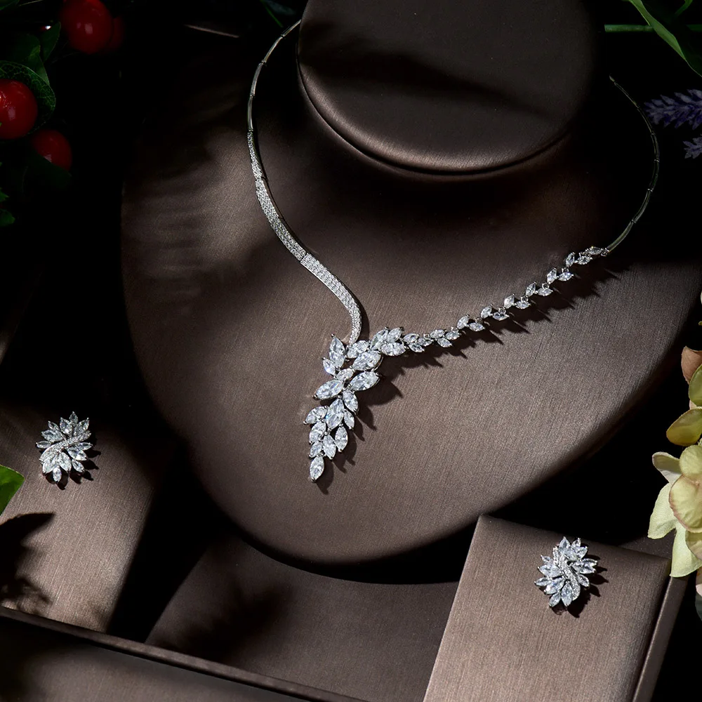 HIBRIDE Роскошный прозрачный кристалл циркония серьги и ожерелье на...